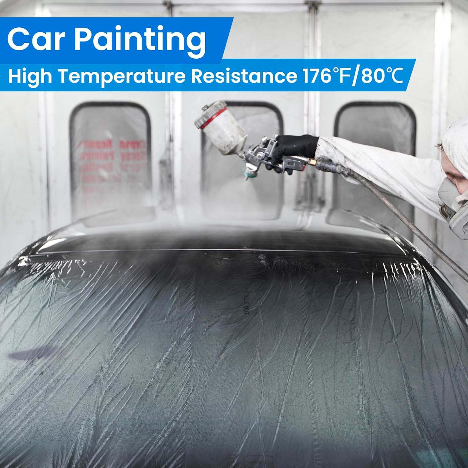 - AUTOMOTIVE PAINTING PROTECTION: This plastic sheeting offer precise coverage and easy removal, safeguarding your car's surfaces from overspray and paint damage. This film delivers flawless results with minimal effort.High temperature range up to 176℉