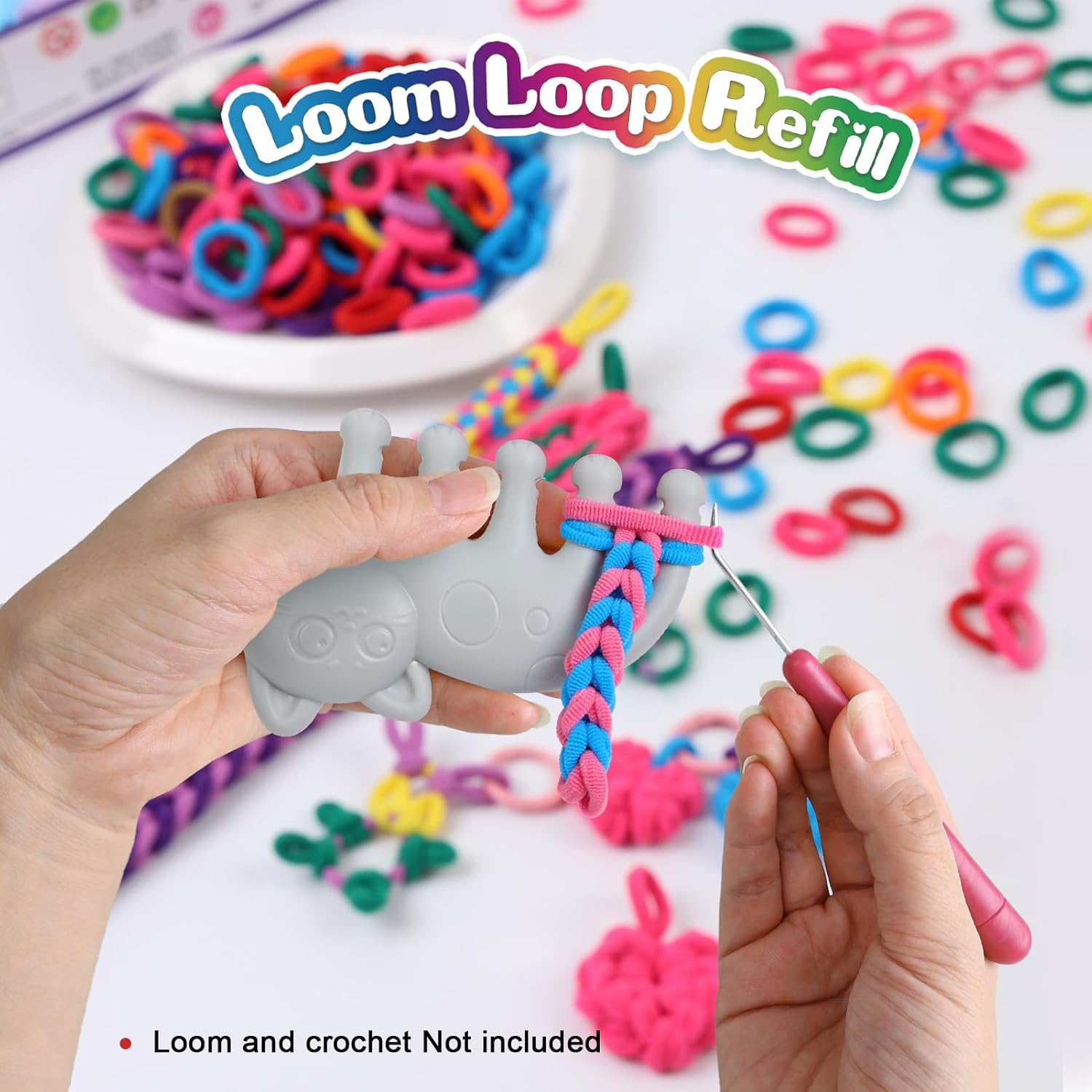 FUNiOi 1000 PCS Cat Weaving Loom Refill for Bracelet Making Kit, DIY Arts and Crafts Supplies, Baby Hair Ties for Girls Ages 6-12, Gift Idea for Kids and Beginners