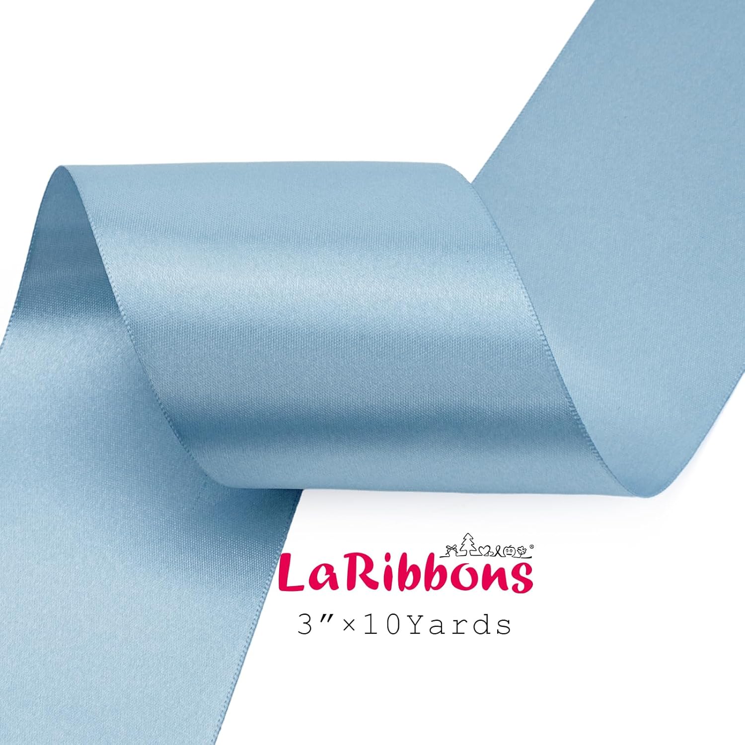 LaRibbons Light Blue Satin Ribbon 3 Inch 10 Yards Double Faced Luxury Baby Blue Silk Ribbon for Gift Wrapping Flower Bouquets Bow Christmas Wedding Party Decoration
