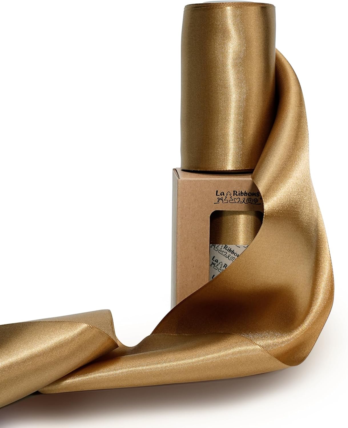 LaRibbons Pale Gold Satin Ribbon 4 Inch 10 Yards Double Faced Luxury Pale Gold Silk Ribbon for Gift Wrapping Flower Bouquets Bow Christmas Wedding Party Decoration