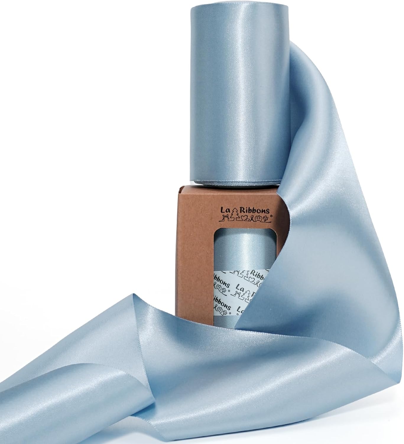 LaRibbons Light Blue Satin Ribbon 4 Inch 10 Yards Double Faced Luxury Baby Blue Silk Ribbon for Gift Wrapping Flower Bouquets Bow Christmas Wedding Party Decoration