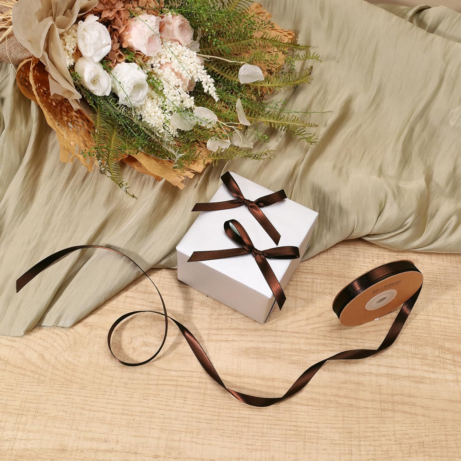 LaRibbons Brown Satin Ribbon 3/8 Inch 50 Yards Thin Luxury Double Faced Firar Brown Silk Ribbon for Flower Bouquet Crafts Gift Wrapping Wedding Christmas Decoration