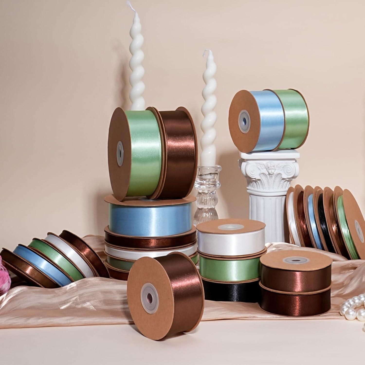 - Professional-Grade Dimensions: Each 1" (2.54cm) width roll contains 50 yards of premium satin ribbon - equivalent to 150 feet of continuous creative potential. Designed for high-volume crafting needs, this industrial-length supply ensures seamless continuity for elaborate floral arrangements and professional event decor.