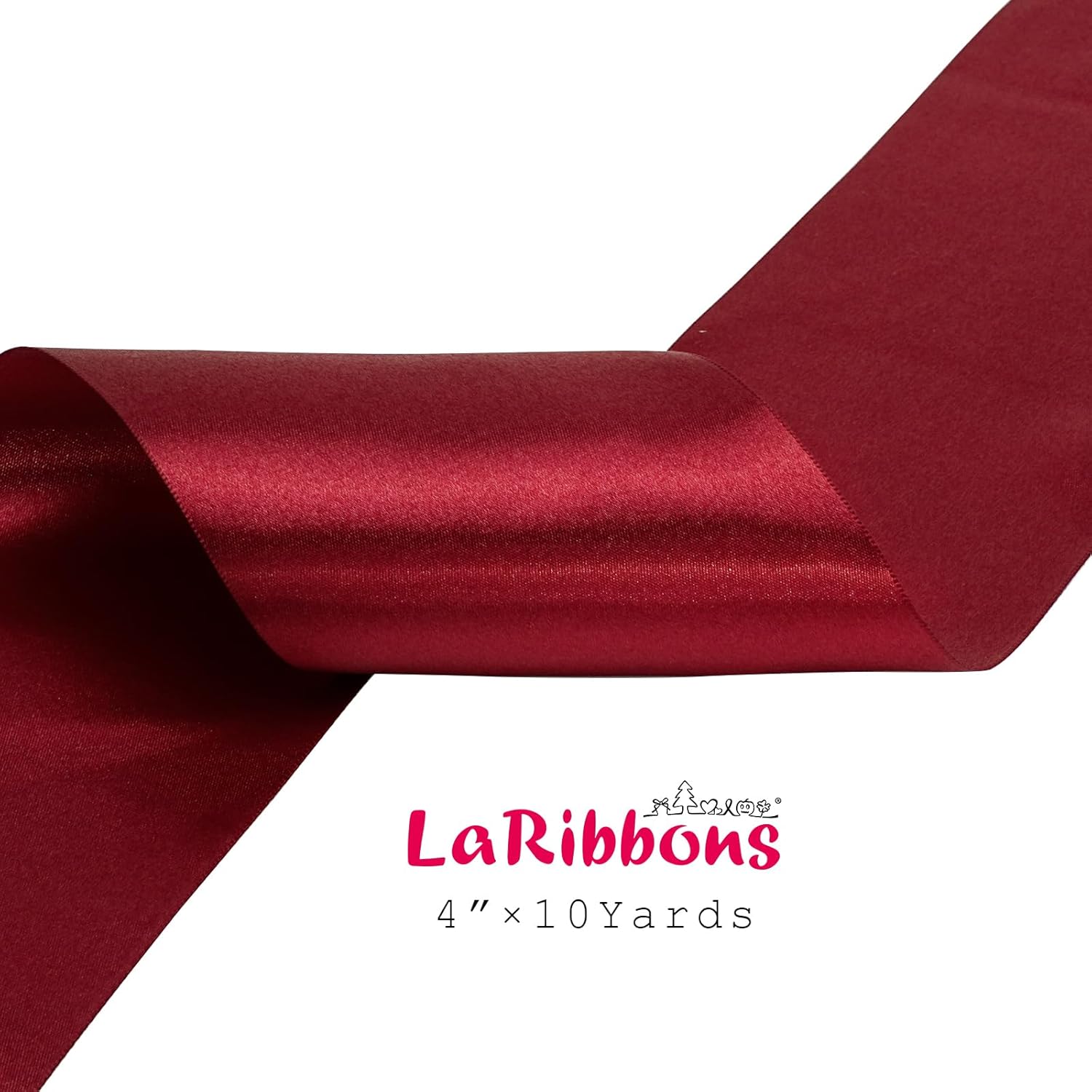 LaRibbons Red Satin Ribbon 4 Inch 10 Yards Christmas Ribbons Double Faced Luxury Burgundy Silk Ribbon for Gift Wrapping Flower Bouquets Bow Christmas Wedding Party Decoration