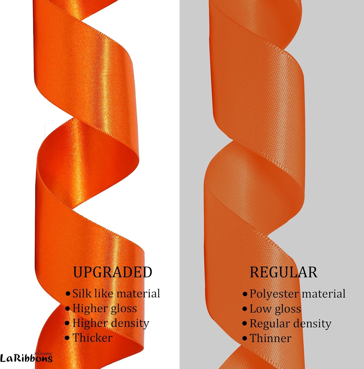 LaRibbons Orange Satin Ribbon 3/8 Inch 50 Yards Thin Luxury Double Faced Russet Orange Silk Ribbon for Flower Bouquet Crafts Gift Wrapping Wedding Fall Decoration