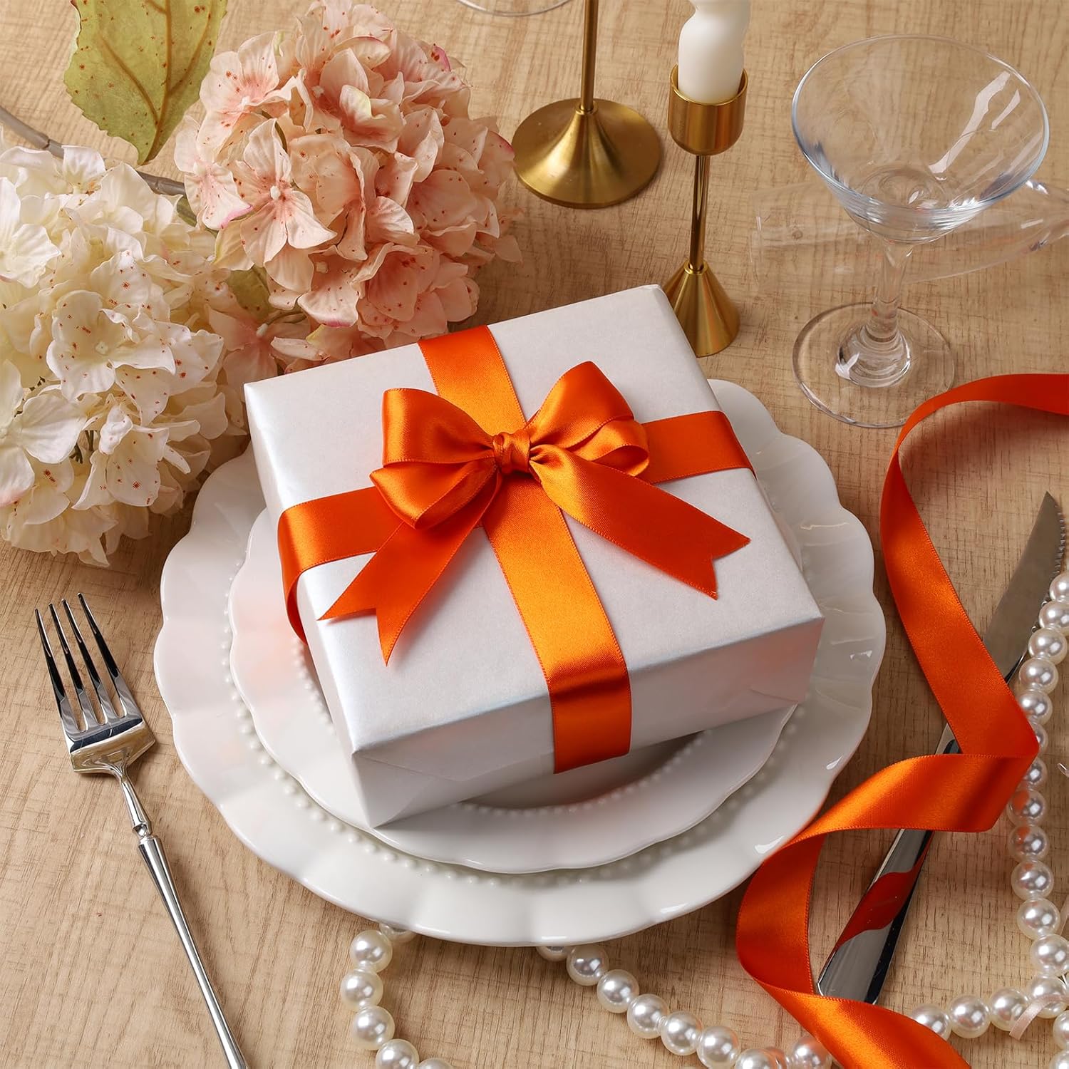 LaRibbons Orange Satin Ribbon 1 Inch 50 Yards Luxury Double Faced Russet Orange Silk Ribbon for Flower Bouquet Crafts Gift Wrapping Wedding Fall Decoration