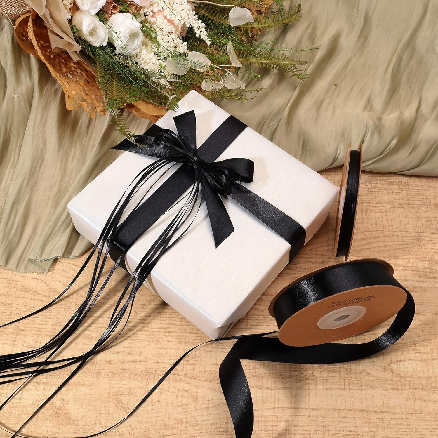 LaRibbons Black Satin Ribbon 1 Inch 50 Yards Luxury Double Faced Red Silk Ribbon for Flower Bouquet Crafts Gift Wrapping Bow Christmas Decoration