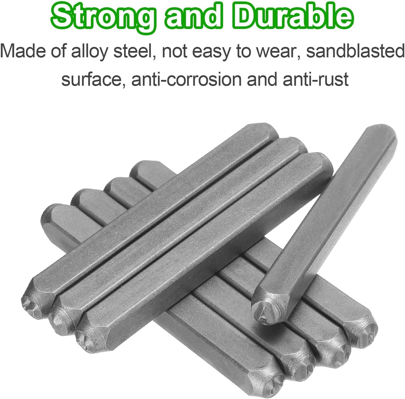 - Material - The letter punch set is made of alloy steel, which is wear-resistant and heat-resistant, sturdy and durable. Anti-corrosion and rust-proof, it will not wear out after multiple uses and is suitable for long-term use.