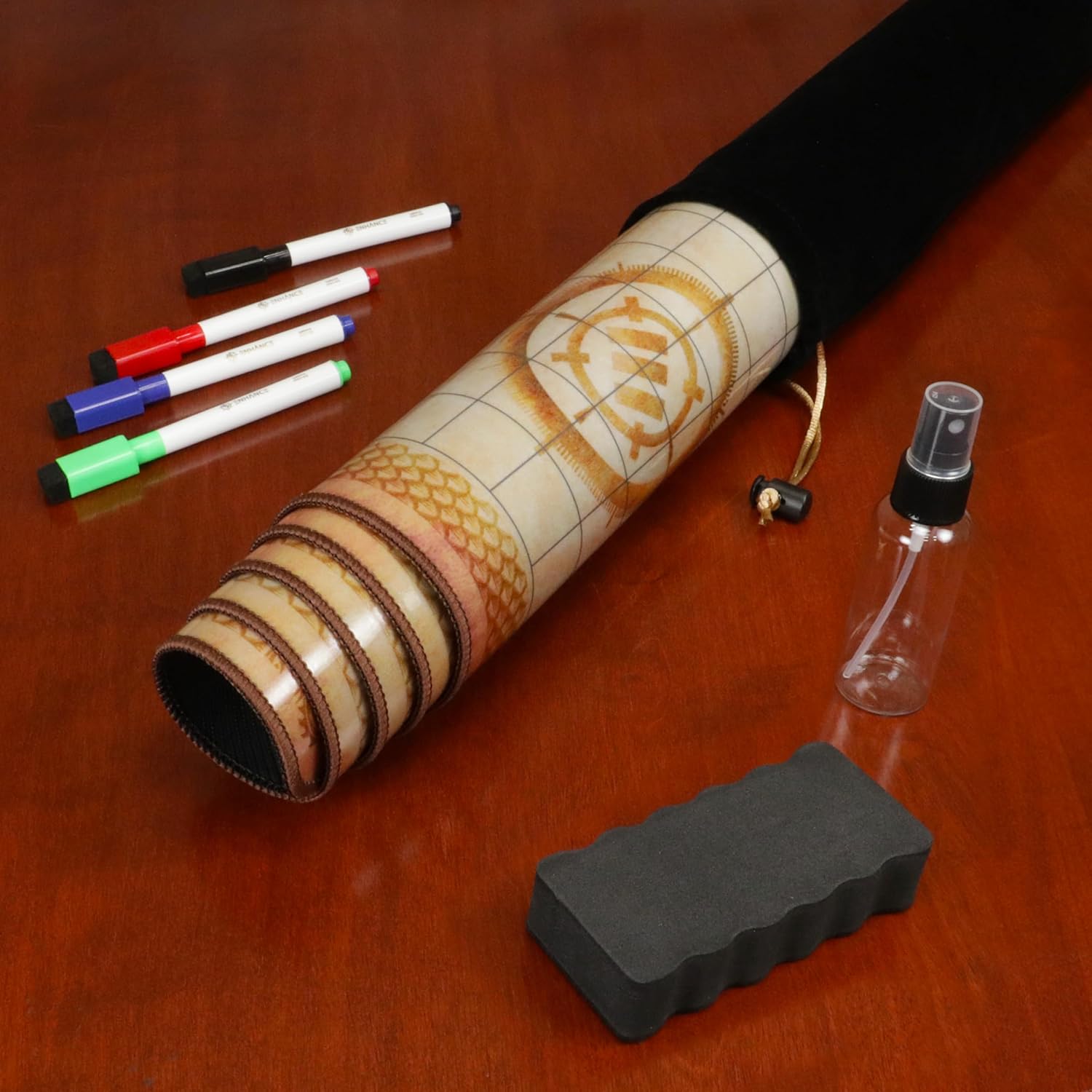 - COMPLETE CAMPAIGN KIT FOR ALL YOUR RPGs – Includes single-sided deluxe grid mat (24" x 36"), battle scroll sleeve travel pouch, dry erase color marker set, empty spray bottle, dry erase eraser