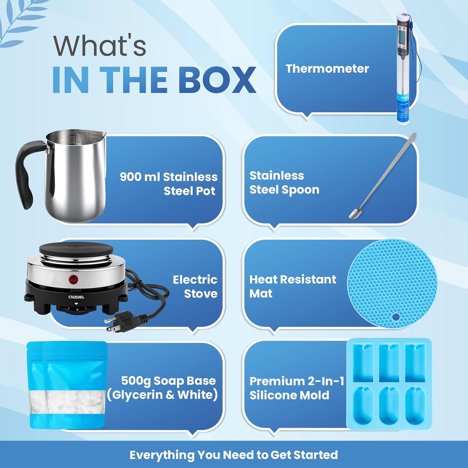 ZMSIB Soap Making Kit with 900ml Stainless Steel Melting Pot | All-in-One DIY Soap Making Kit with Silicone Mold | Digital Thermometer | Soap Base | Mixing Spoon | Heat Resistant Mat & Electric Stove