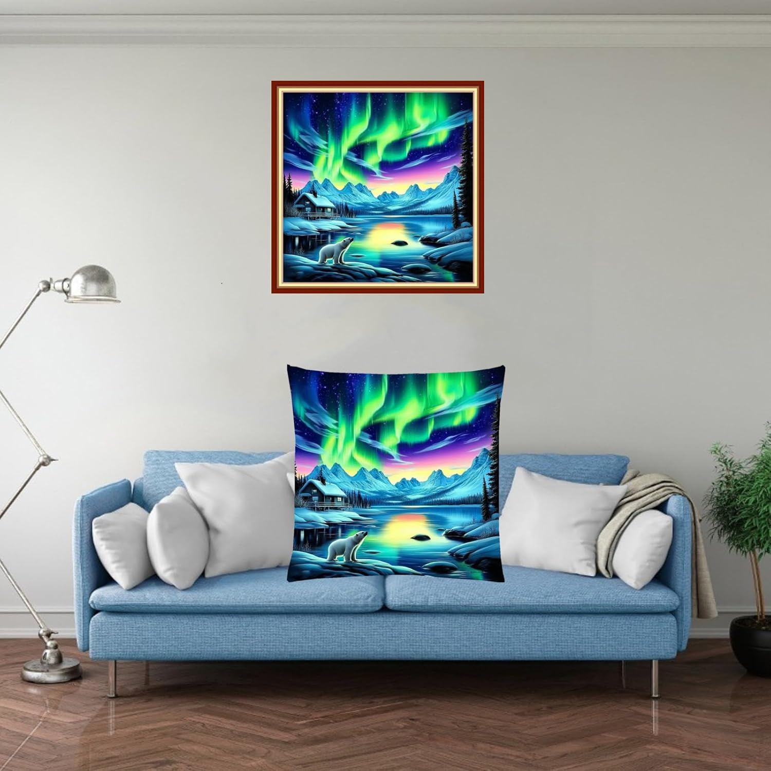 Fanxvivy Stamped Cross Stitch Kits for Adults Beginners Pillow Needlepoint Kit with Embroidery Pattern Needlework Kit Prestamped Stitches Kit 11CT Cross Stitching-Northern Lights Bear 18x18 inch
