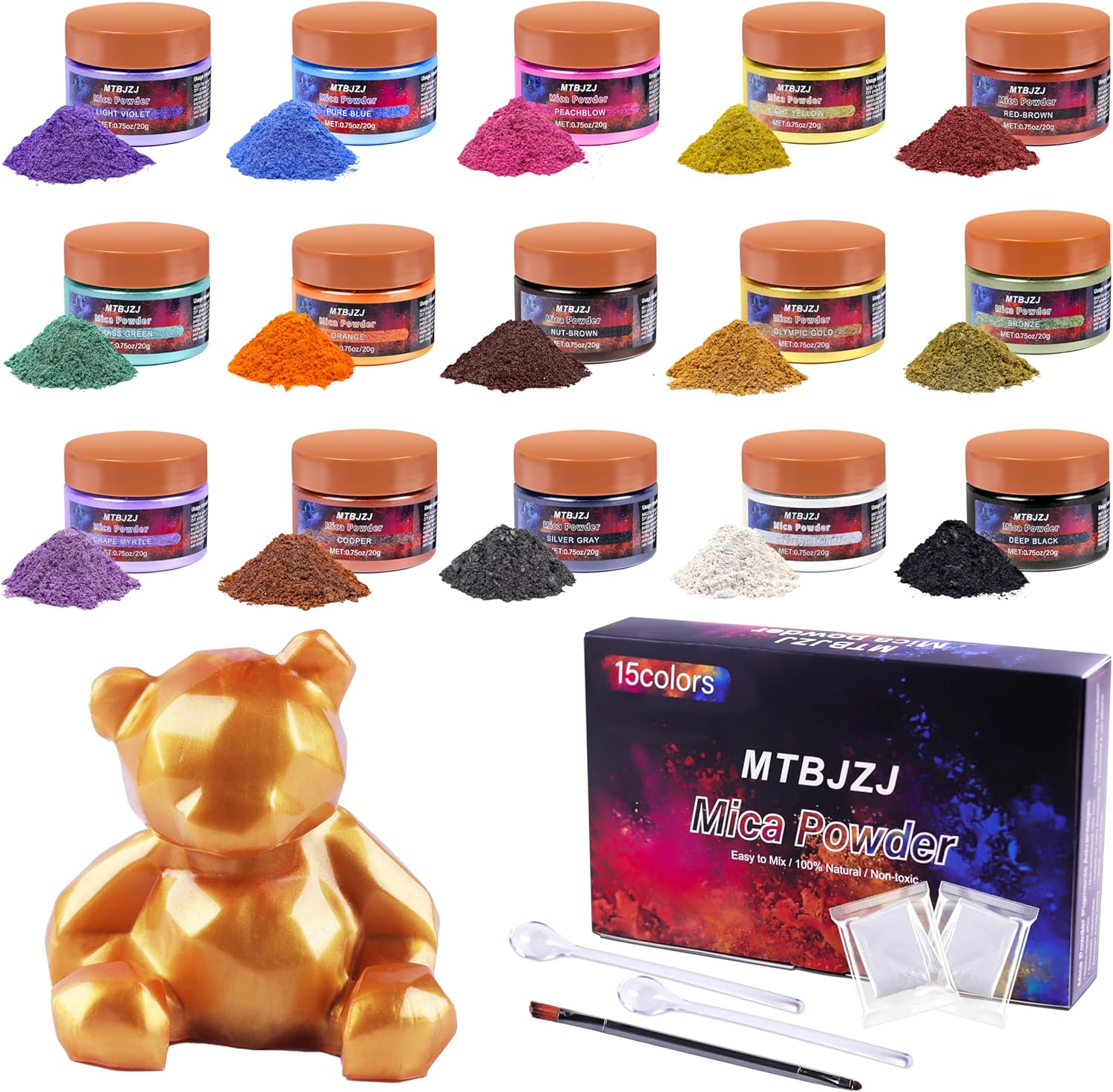 MTBJZJ Mica Powder for Resin, 15 Colors - 20g/Bottle of Epoxy Resin Color Pigment,for Candle Dye, Lip Gloss Pigment, Soap Making, Slime Colorant, Paint, Bath Bombs,Nail Polish and Eye Shadow