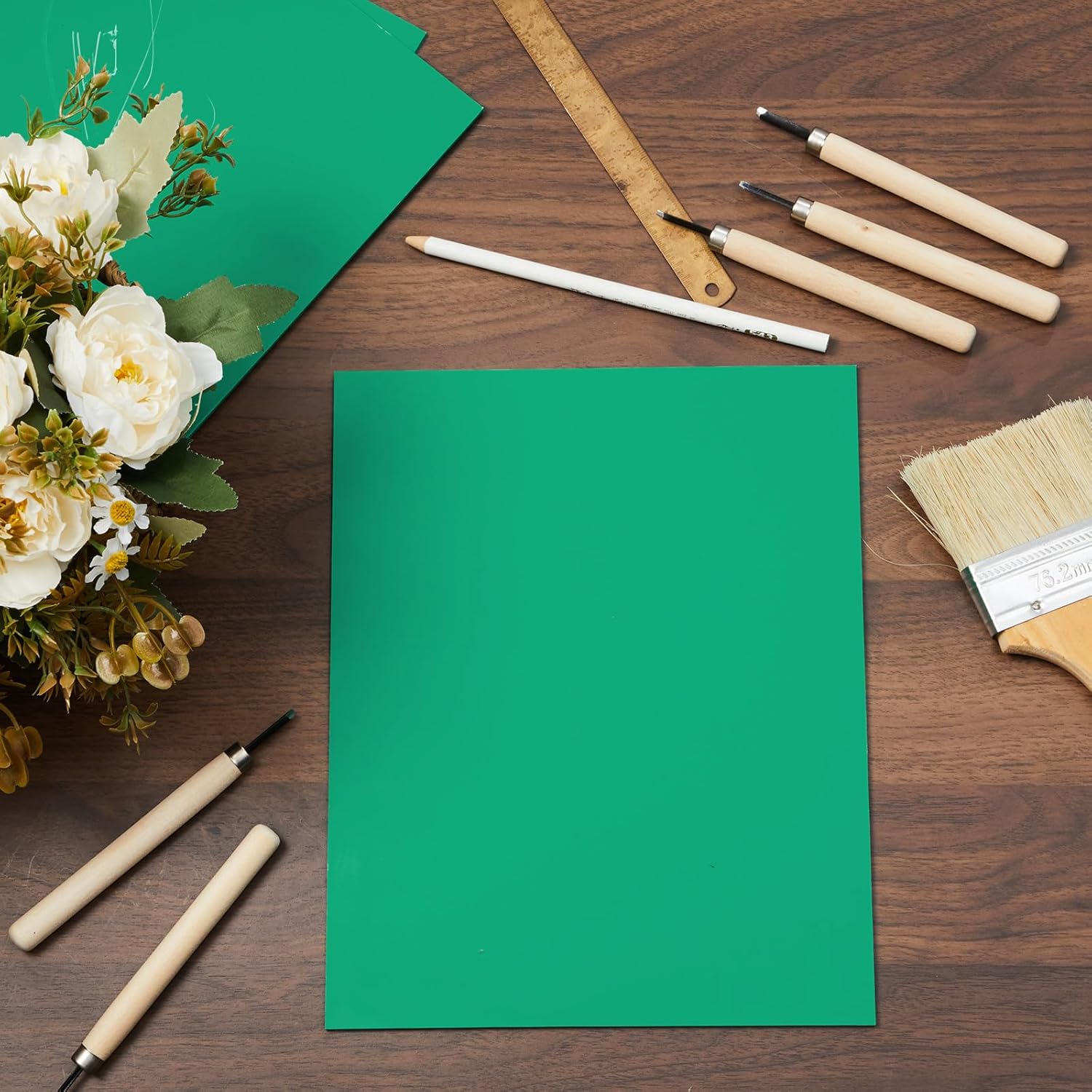 Yeaqee 8 Pcs Linoleum Block Rubber Carving Block Soft Linocut Blocks Large Linoleum Sheet Unmounted Lino Plates for Engraving Art Project Printmaking Artist Studio Supplies (8 x 10 Inch,Green)