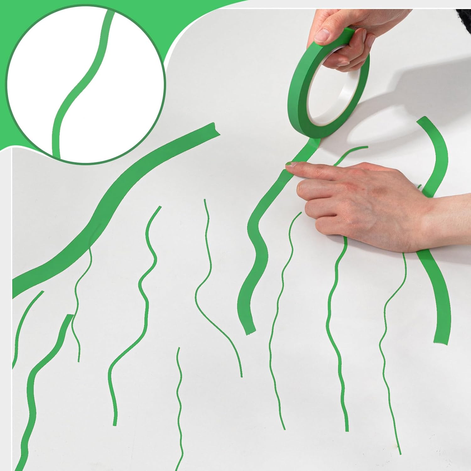 Xuniea 5 Rolls of Vinyl Tape Masking Tape Automotive Car Auto Paint for Curves, High Temperature Vinyl Low Tack(1/16 Inch, 1/8 Inch, 1/4 Inch, 1/2 Inch, 3/4 Inch,Green)