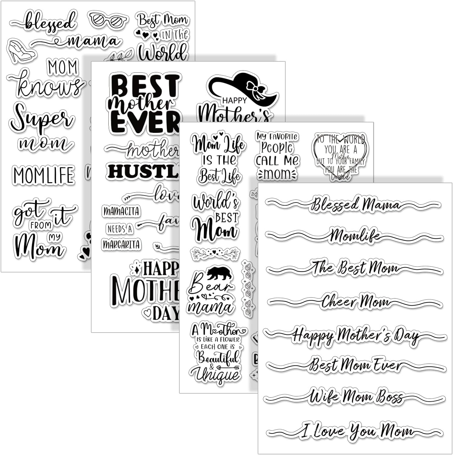 Whaline 4 Sheets Mother's Day Clear Stamps Greeting Words Silicone Transparent Stamps for DIY Craft Card Making Scrapbooking Embossing Album Decor