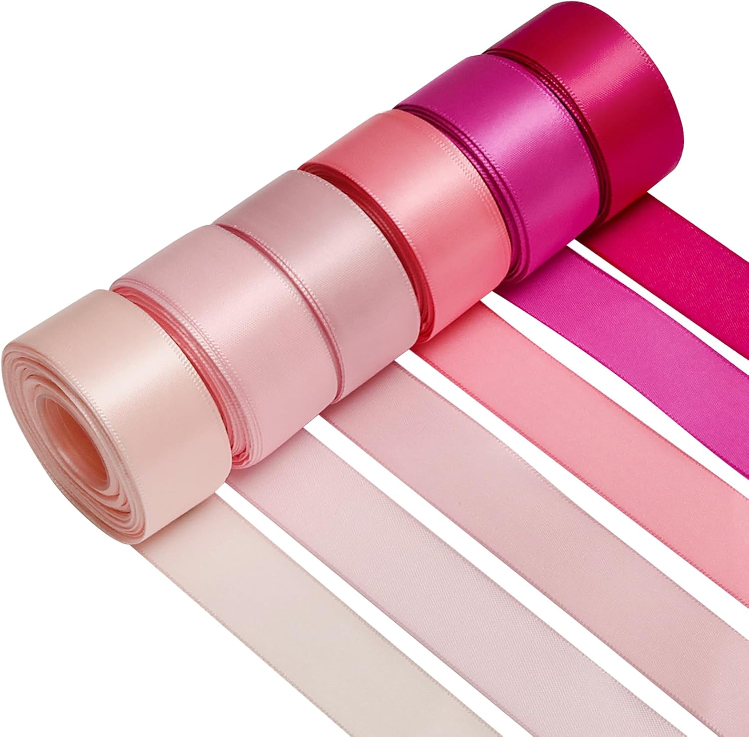 1 Inch Pink Satin Ribbons for Crafts, 6 Rolls Single-Faced Pink Assorted Ribbons for Gift Wrapping Flower Bouquet Wedding Invitations Bridal Shower Hair Bows Garland Party Decor