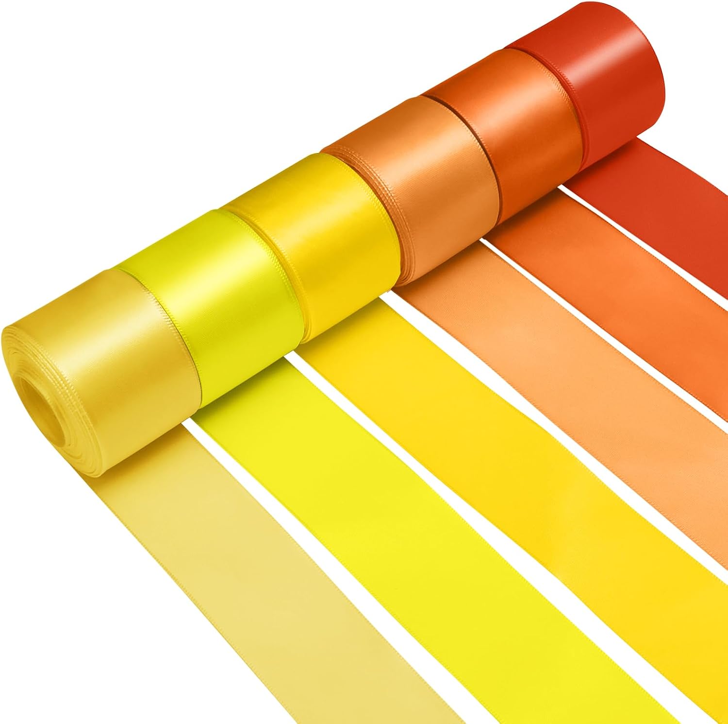 - 【What's Include】:6 rolls 1-1/2 inch wide single-faced orange and yellow ribbon measures 10 yards (30 feet) each roll, 60 yards (180 feet) in total