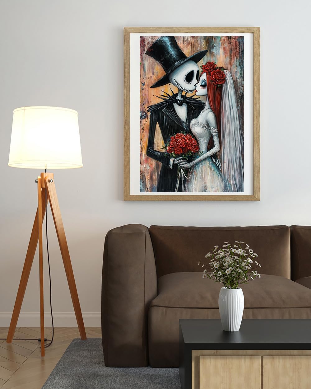 Moohue 14ct Counted Stamped Cross Stitch Kits for Adults Skulls Couple Roses Printed Cross Stitch Patterns Art Crafts Cross Stitch Supplies (Skeleton Couple)