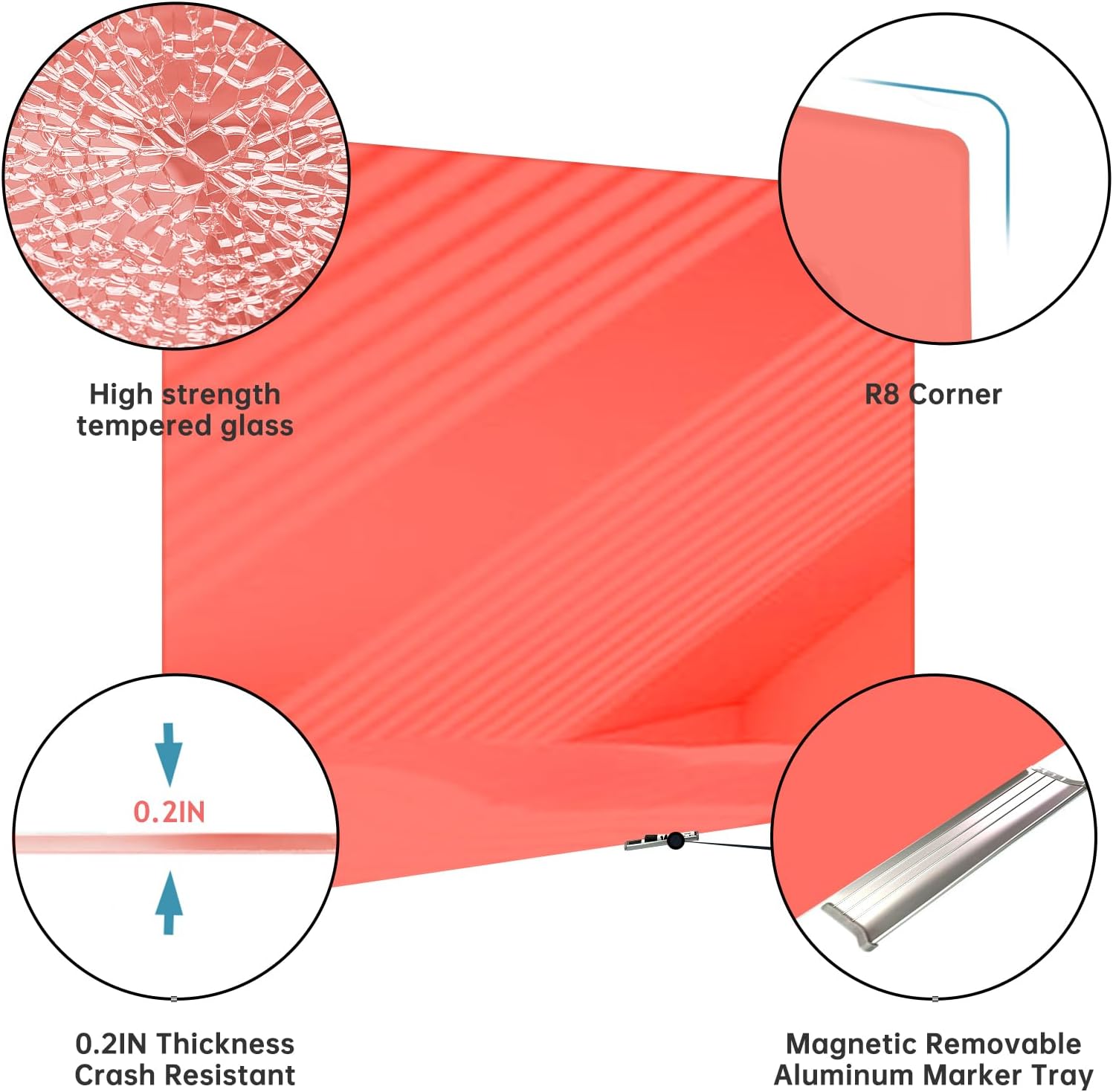 - Superior Durability & Clarity: Crafted from high-density tempered glass, our dry erase whiteboard offers unmatched durability and resilience. It resists stains, ghosting, scratches, and dents, ensuring a clear and pristine surface for years of heavy use. Perfect for frequent writing, erasing, and rewriting without leaving any marks.