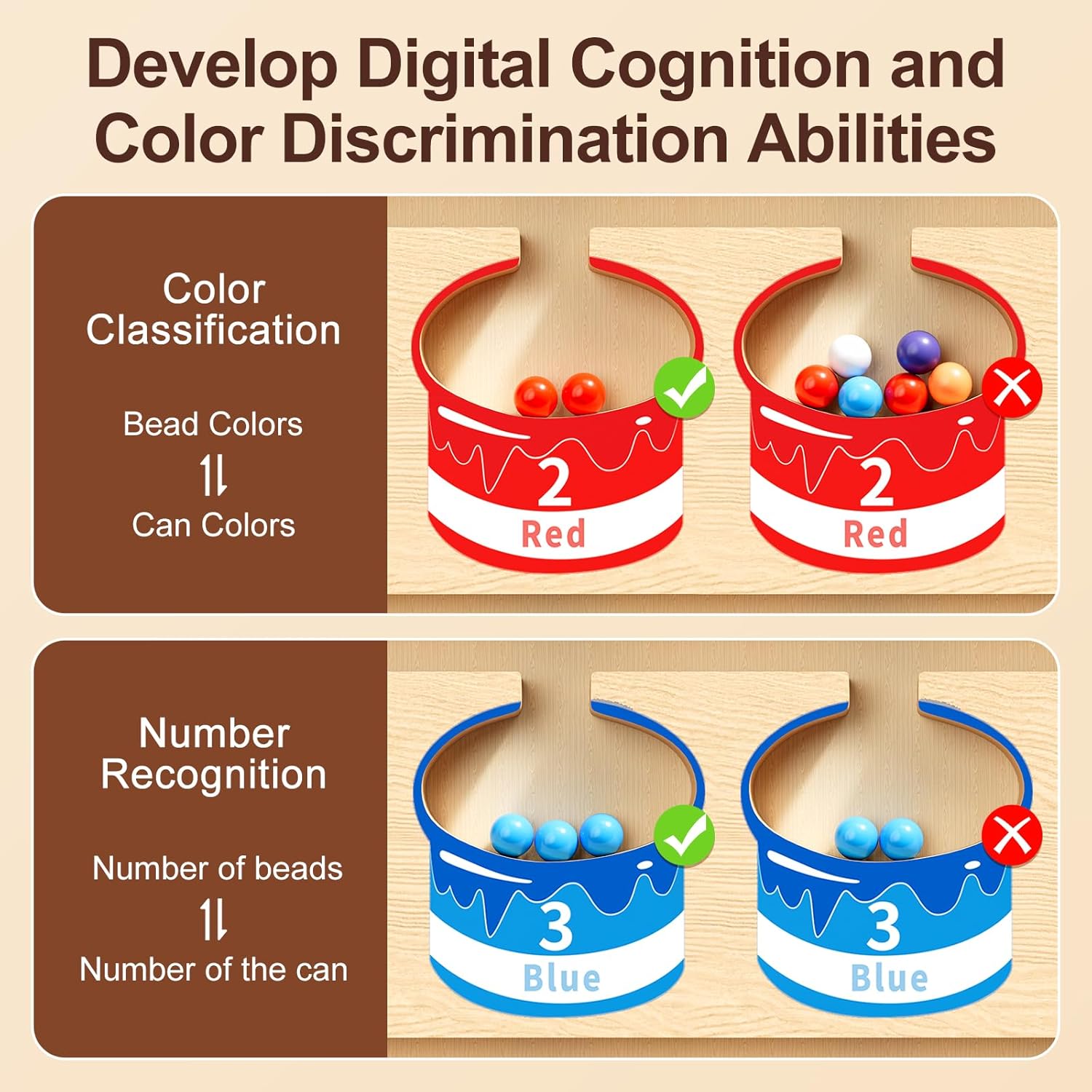 - 【Perfectly-Strength Magnetic Stick】: This magnetic maze is a fun matching game for toddlers. Kids use the magnetic stick to move beads from tracks to colored buckets, matching bead counts to bucket numbers. The stick has just the right pull: easy to grab beads, but not so strong that it picks up too many. It holds one bead at a time, making play simpler. With this magnetic color and counting maze, children practice color matching and counting while developing their patience and focus.