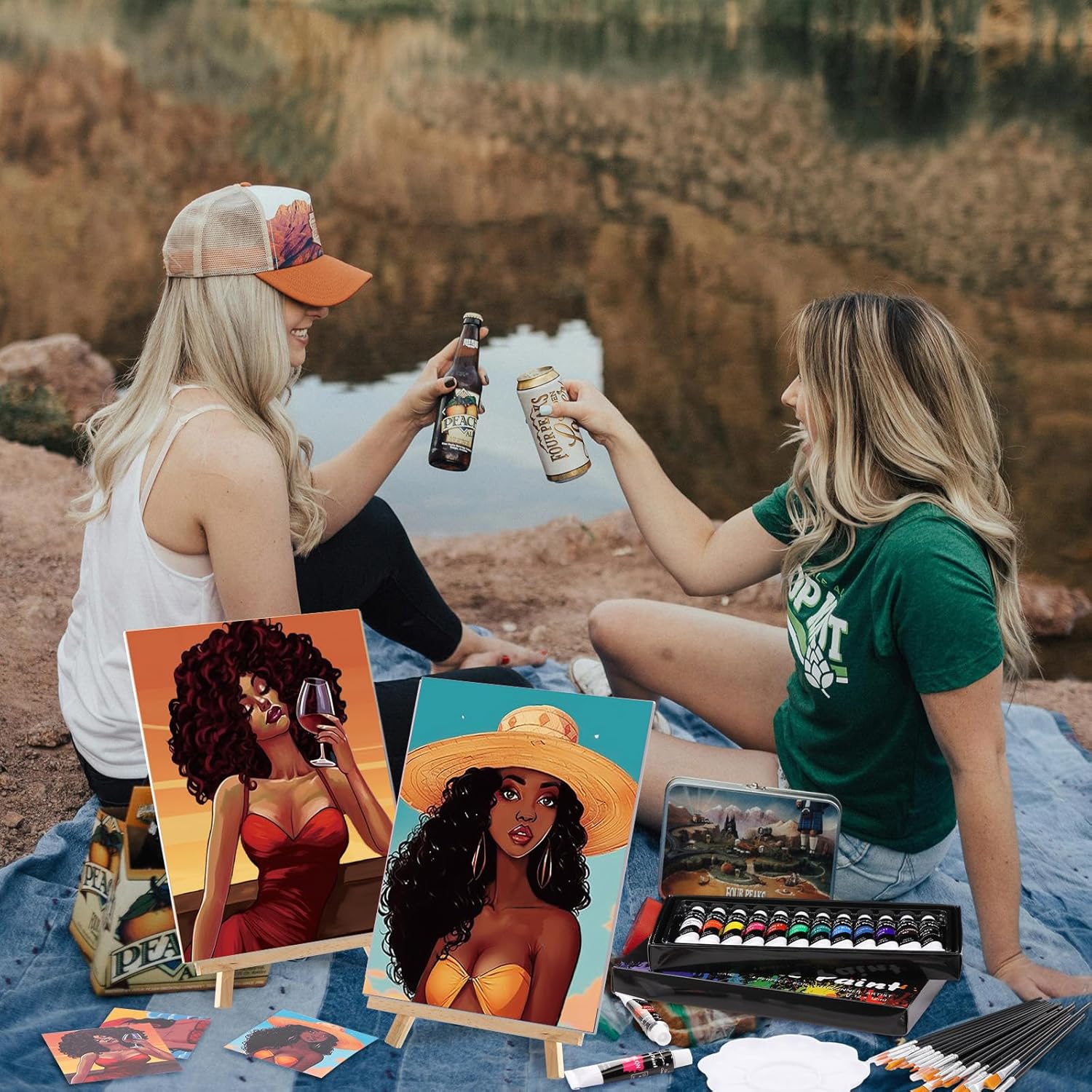Cholemy 36 Pcs Paint and Sip Kit for Adults 8''x10'' Pre Drawn Canvas for Painting DIY Afro Acrylic Painting Kit Wood Easel Brushes Date Night Bulk for Christmas Party Gifts(Fashion Women)
