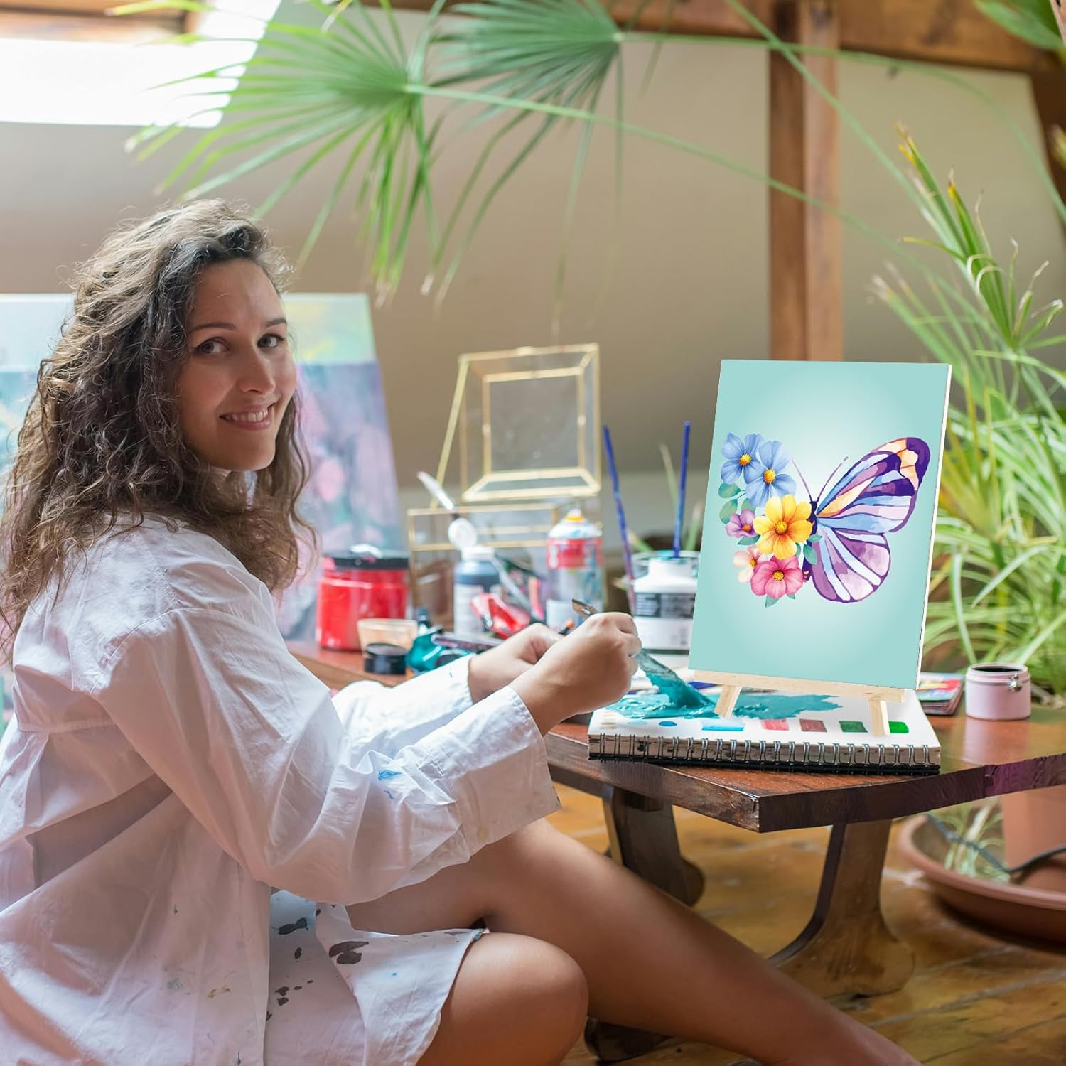 - Extensive Pre Printed Canvases Set: a total of 8 pre printed canvas, with 8 different well designed patterns; Comes with 12 reference color matching cards corresponding to the pattern; 2 packs of acrylic paint set, each pack contain 12 different colors; 2 pcs wooden easel holders; 8 packs of paintbrushes, 3 per pack, including 3 different pen and 8 pcs of white paint trays