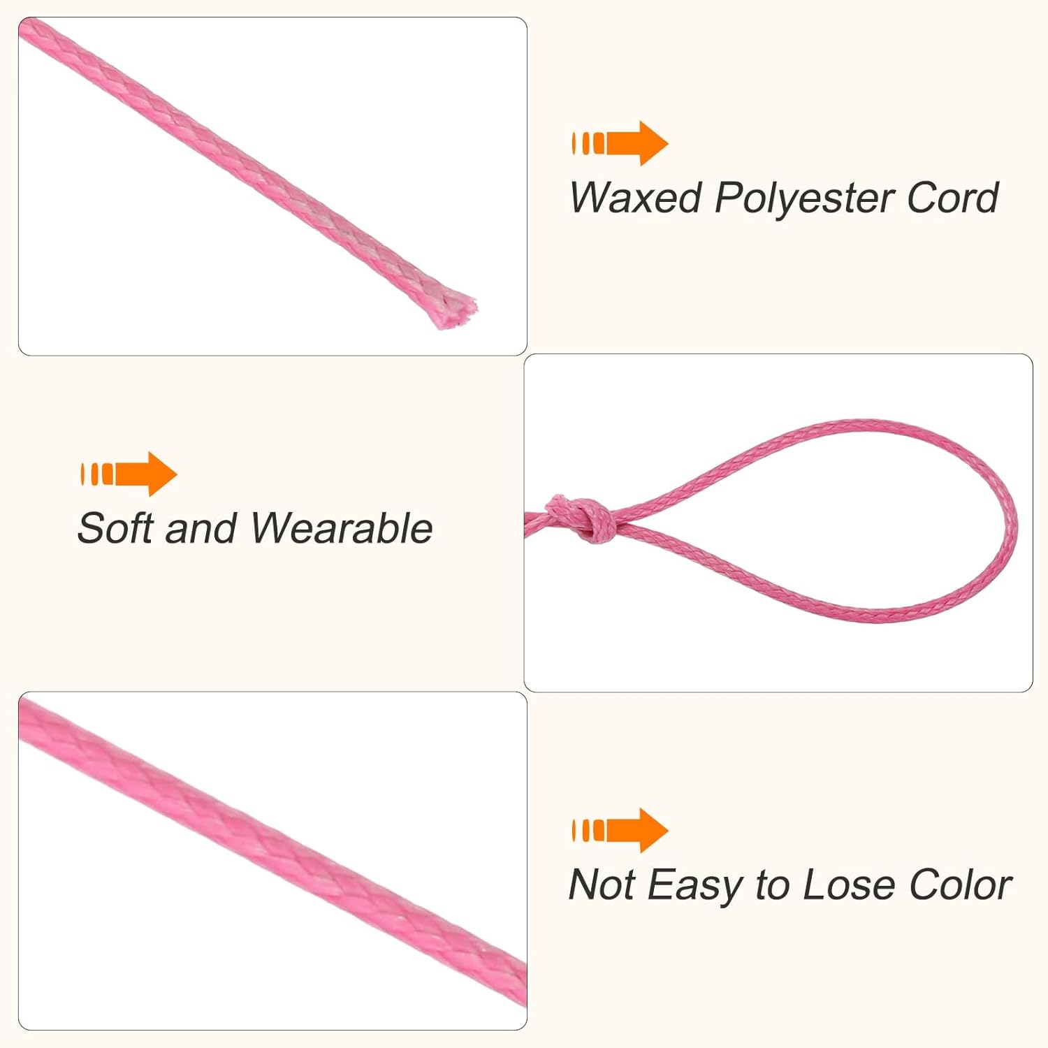 MECCANIXITY Waxed Cord 0.5mm Waxed Polyester Cord 175 Yard Wax String for Bracelet Making, Necklaces, Beading, Jewelry Making and DIY Crafts(Light Rose Red)