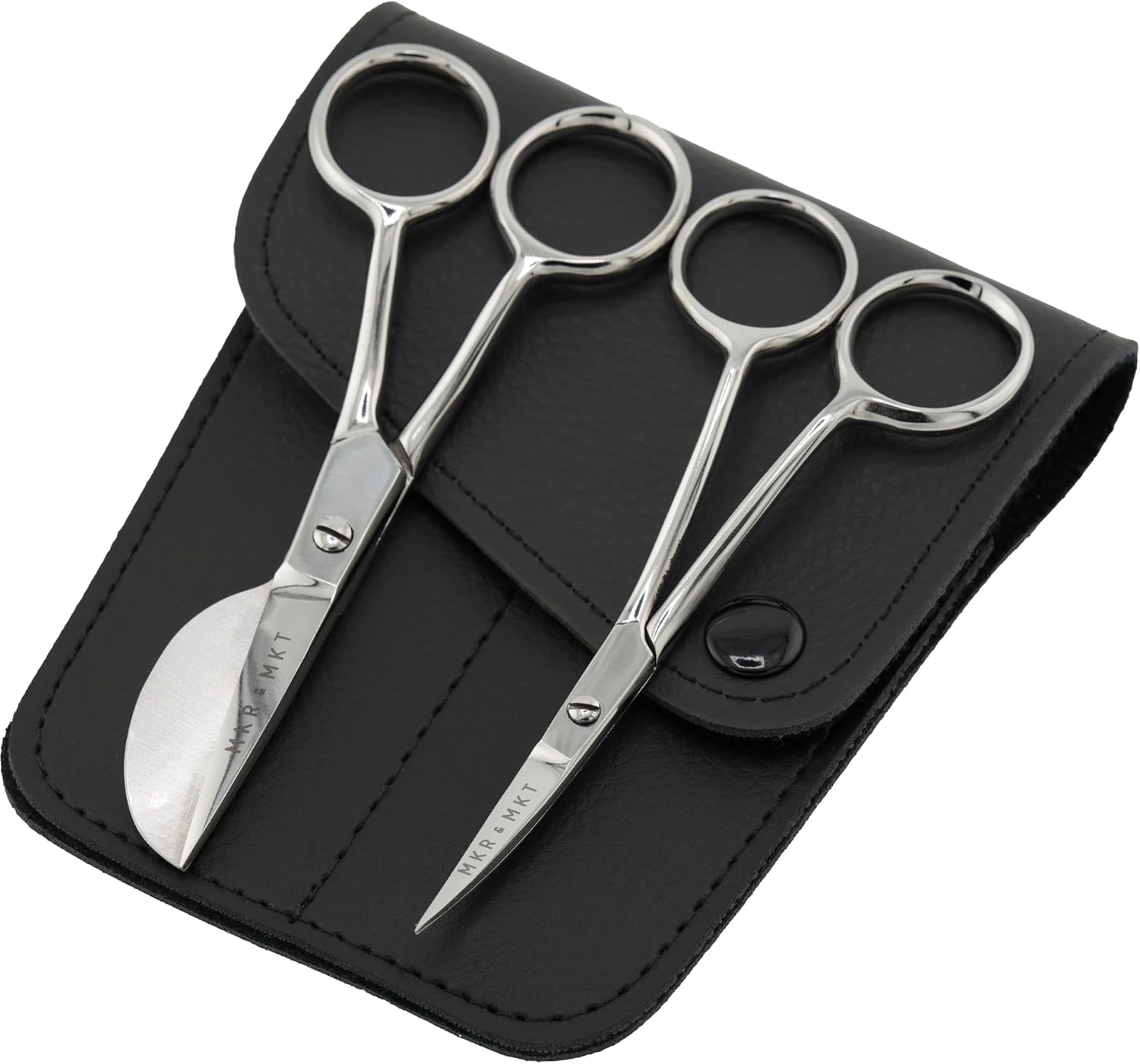 Small Embroidery 4.5 Inch Scissors Set of 2 Kit - Mini Double Bend Offset Duckbill and Double Bend Long Applique Needlepoint Blade with Pouch Sleeve (Polished)