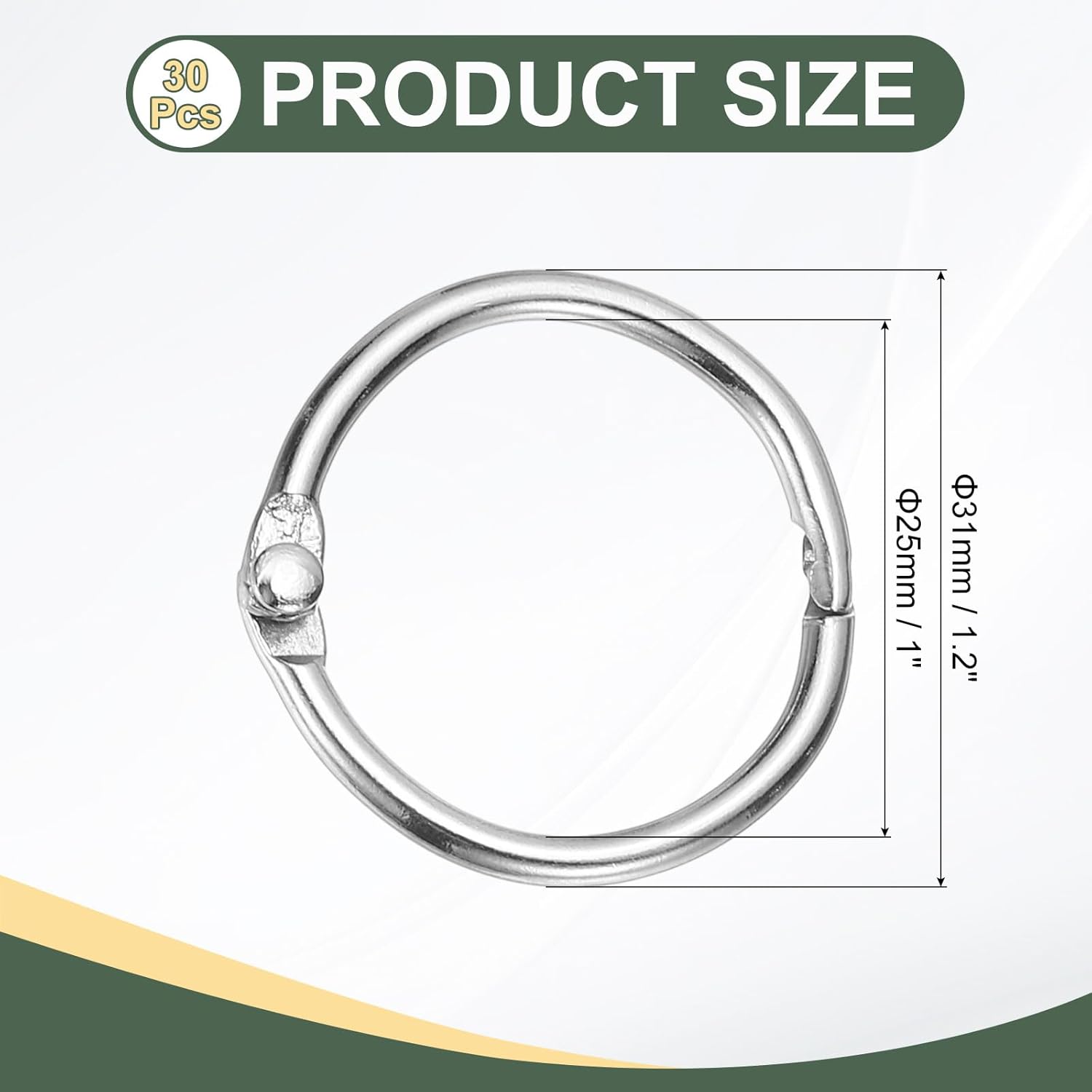 - Color: Silver Tone; Material: Steel; Size: 1" x 1.2"/25mm x 31mm(ID*OD); Packing List: 30 x Rings for Paper