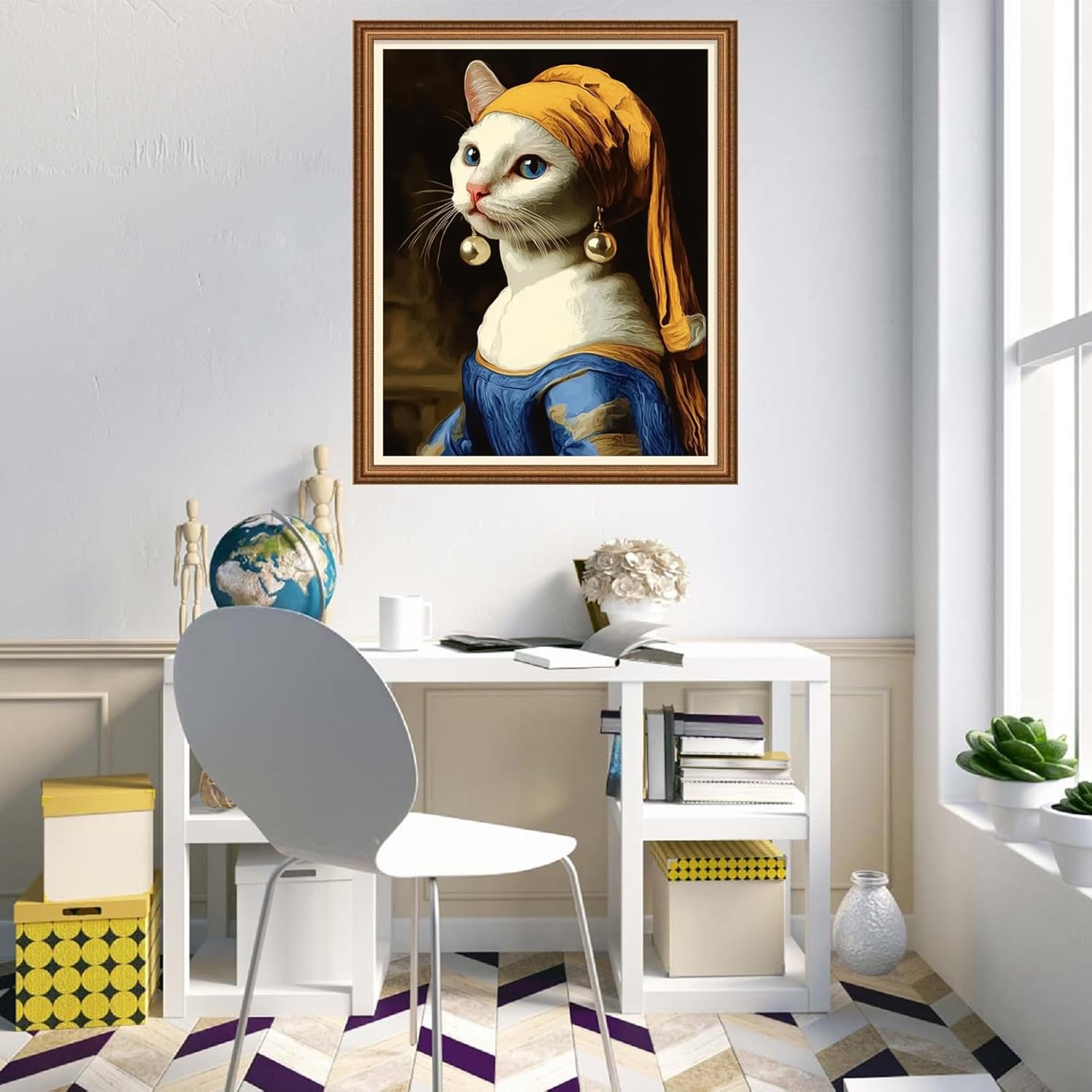 Disnesart Cross Stitch Stamped Full Embroidery Kits DIY 11CT Cotton Thread Printed DIY Needlepoint Kits Craft Needlework Set Cross-Stitch Stamped Sets-Abstract cat with Pearl Earrings 16x20 inch