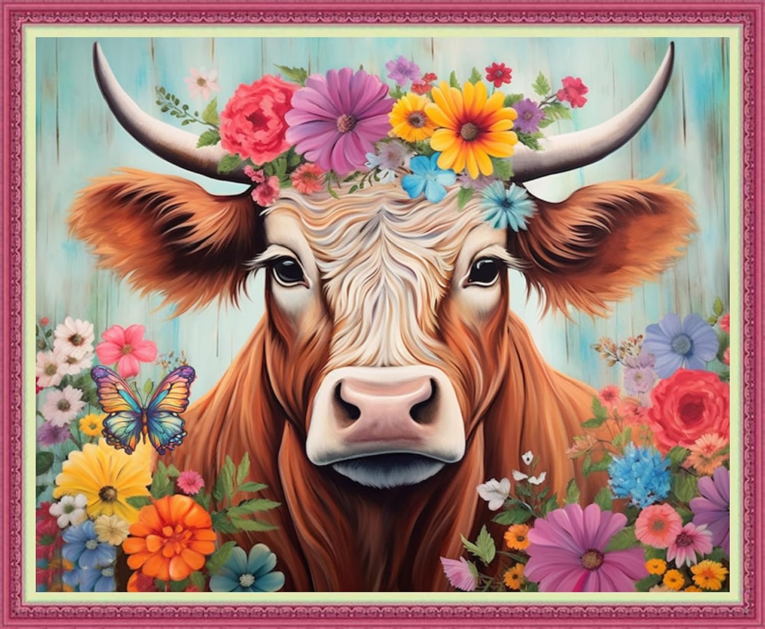 Disnesart Cross Stitch Stamped Full Embroidery Kits DIY 11CT Cotton Thread Printed DIY Needlepoint Kits Craft Needlework Set Cross-Stitch Stamped Sets-Colorful Flowers, Colorful Cows 16x20 inch