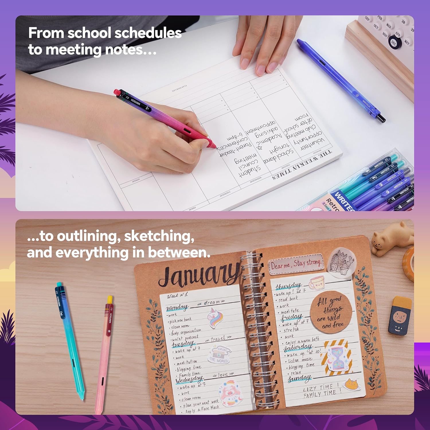 - Silent Click Mechanism: Features a quiet clicker to eliminate distractions in classrooms, offices, meetings, or libraries. Focus-friendly design helps reduce noise and maintain writing flow.