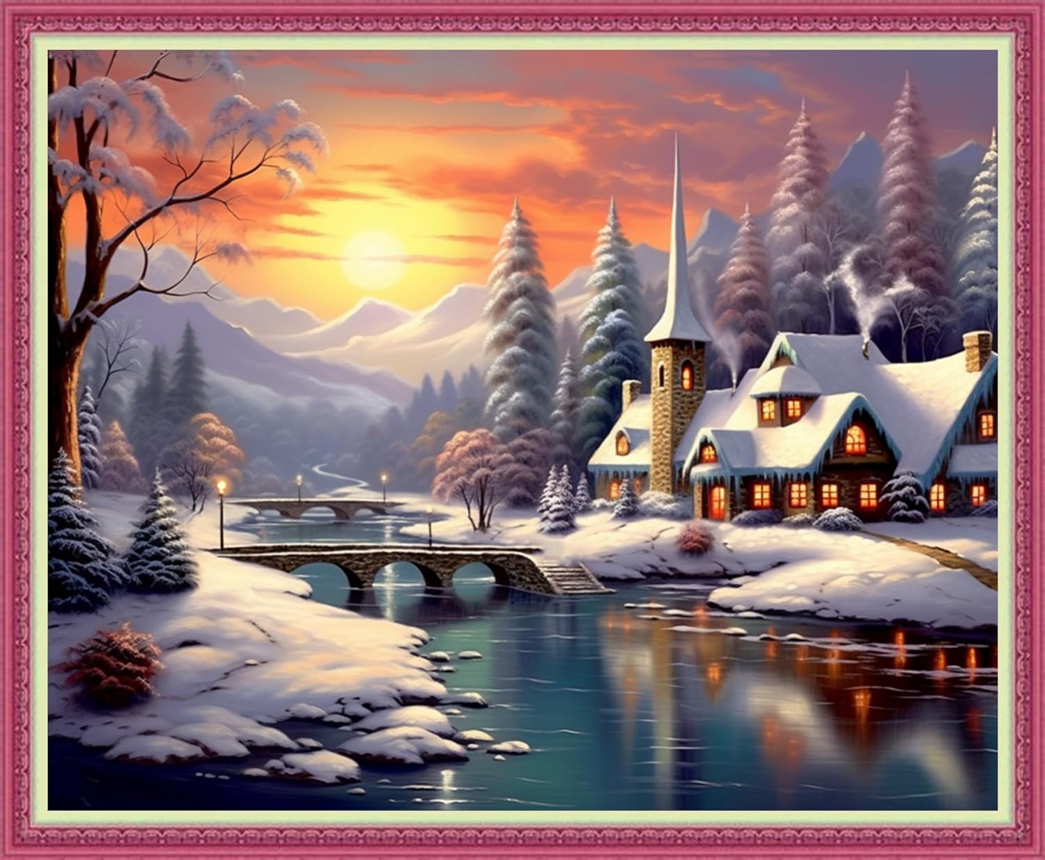 Disnesart Cross Stitch Stamped Full Embroidery Kits DIY 11CT Cotton Thread Printed DIY Needlepoint Kits Craft Needlework Set Cross-Stitch Stamped Sets-Winter Snow Scenery 16x20 inch