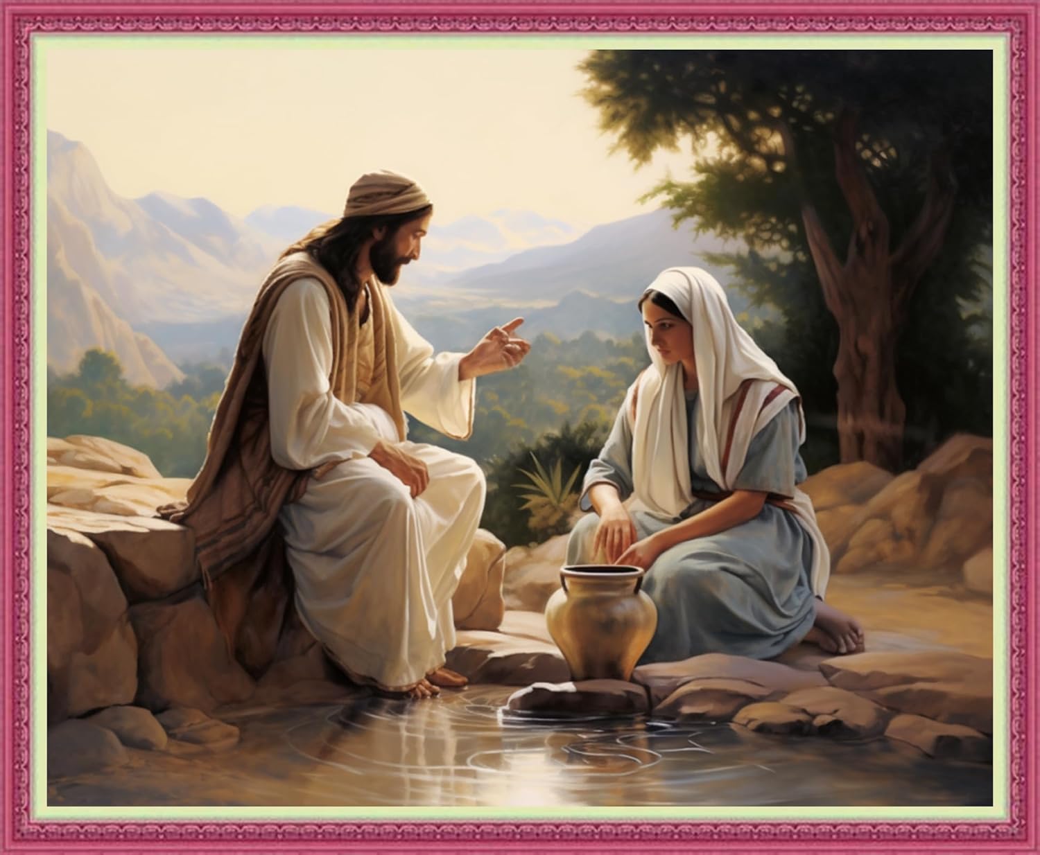 Disnesart Cross Stitch Stamped Full Embroidery Kits DIY 11CT Cotton Thread Printed DIY Needlepoint Kits Craft Needlework Set Cross-Stitch Stamped Sets- Jesus and Women 16x20 inch
