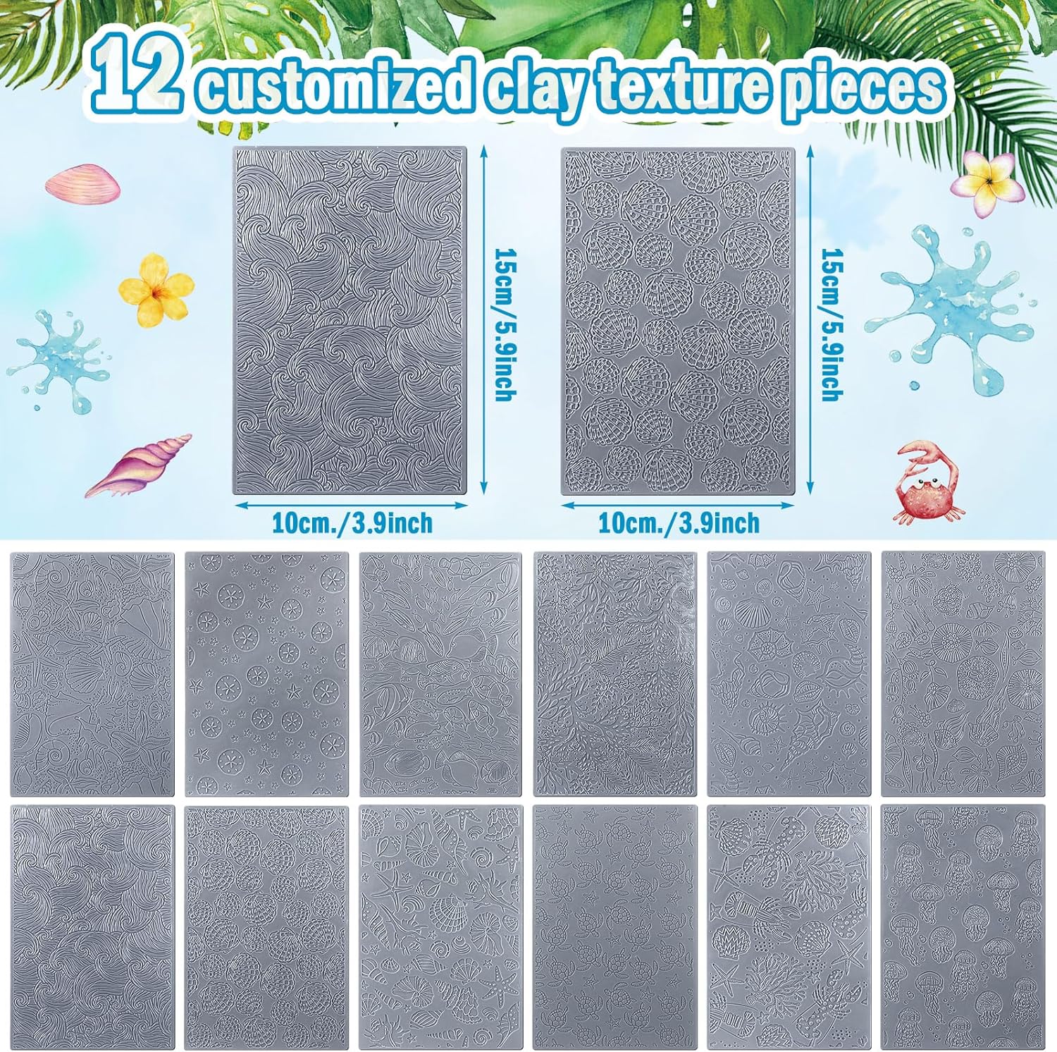 - Versatile Design Possibilities: experience creativity with our set of 12 polymer clay texture sheets; Boasting a variety of designs, from shells to waves to fish and turtle pattern, you'll discover endless design possibilities; Crafted from plastic in a stylish gray color, these sheets will be your companions for your DIY creations