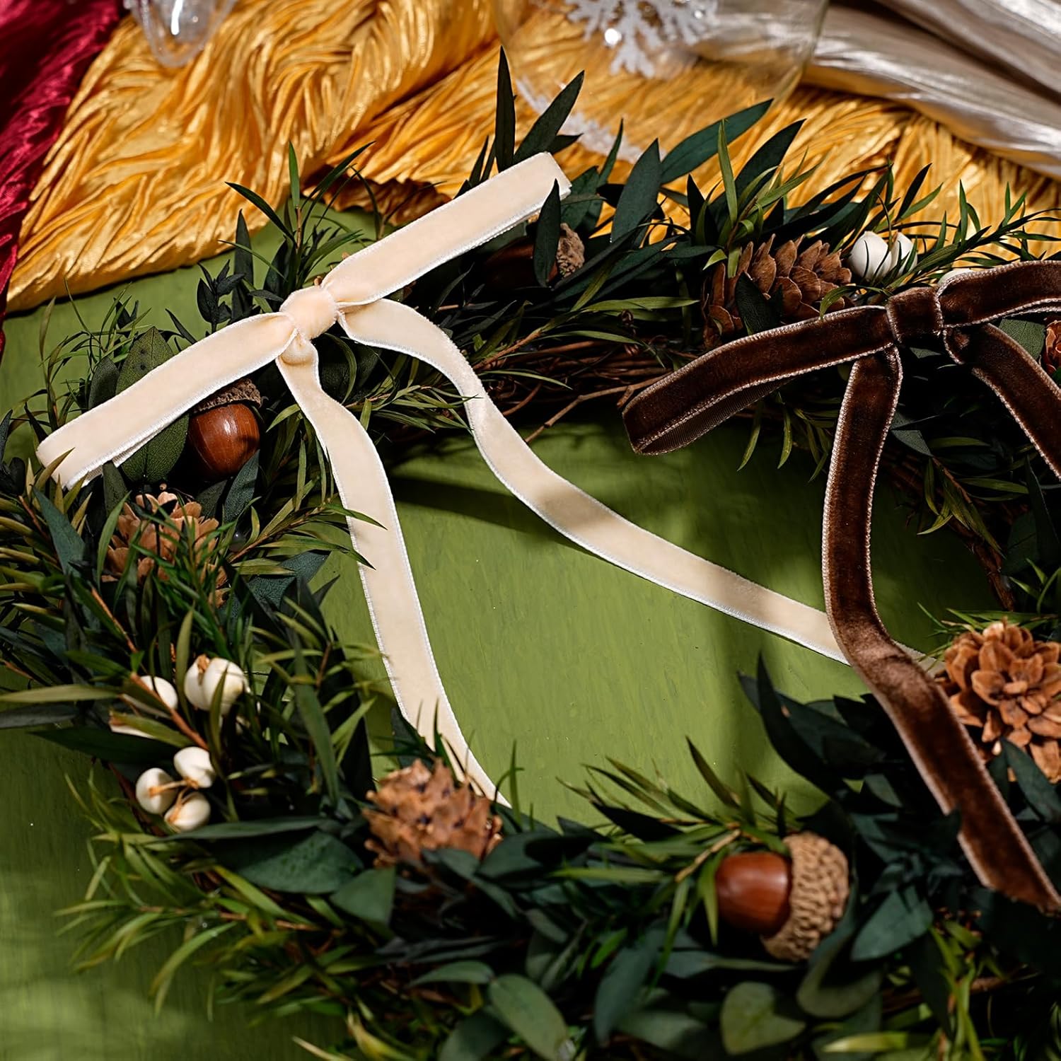 LaRibbons Thin Velvet Ribbon 3/8 Inch x 25 Yards, Cream Ivory Velvet Ribbon for Christmas Tree, Gift Wrapping, Wreath Bow, Outdoor Decoration