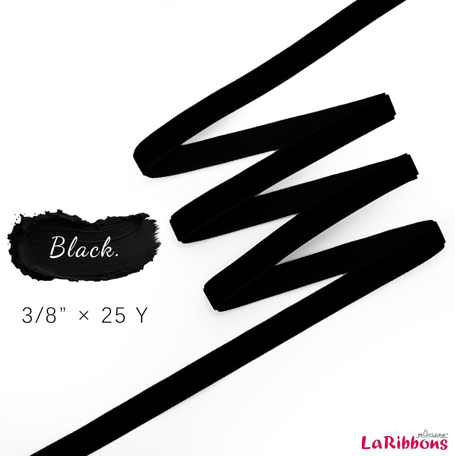 LaRibbons Thin Velvet Ribbon 3/8 Inch x 25 Yards, Black Velvet Ribbon for Christmas Tree, Gift Wrapping, Wreath Bow, Outdoor Decoration