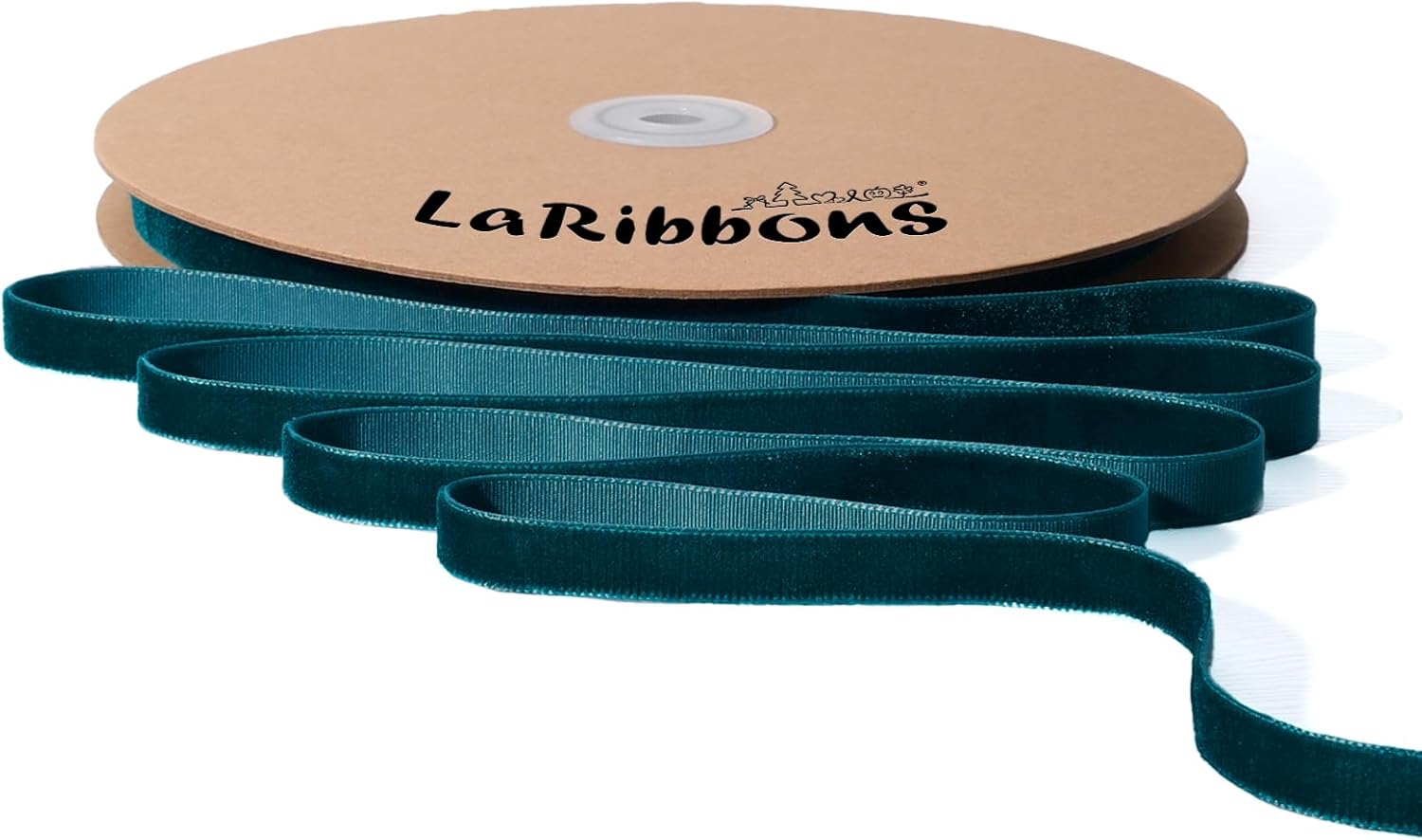 LaRibbons Thin Velvet Ribbon 3/8 Inch x 25 Yards, Dark Blue Velvet Ribbon for Christmas Tree, Gift Wrapping, Wreath Bow, Outdoor Decoration