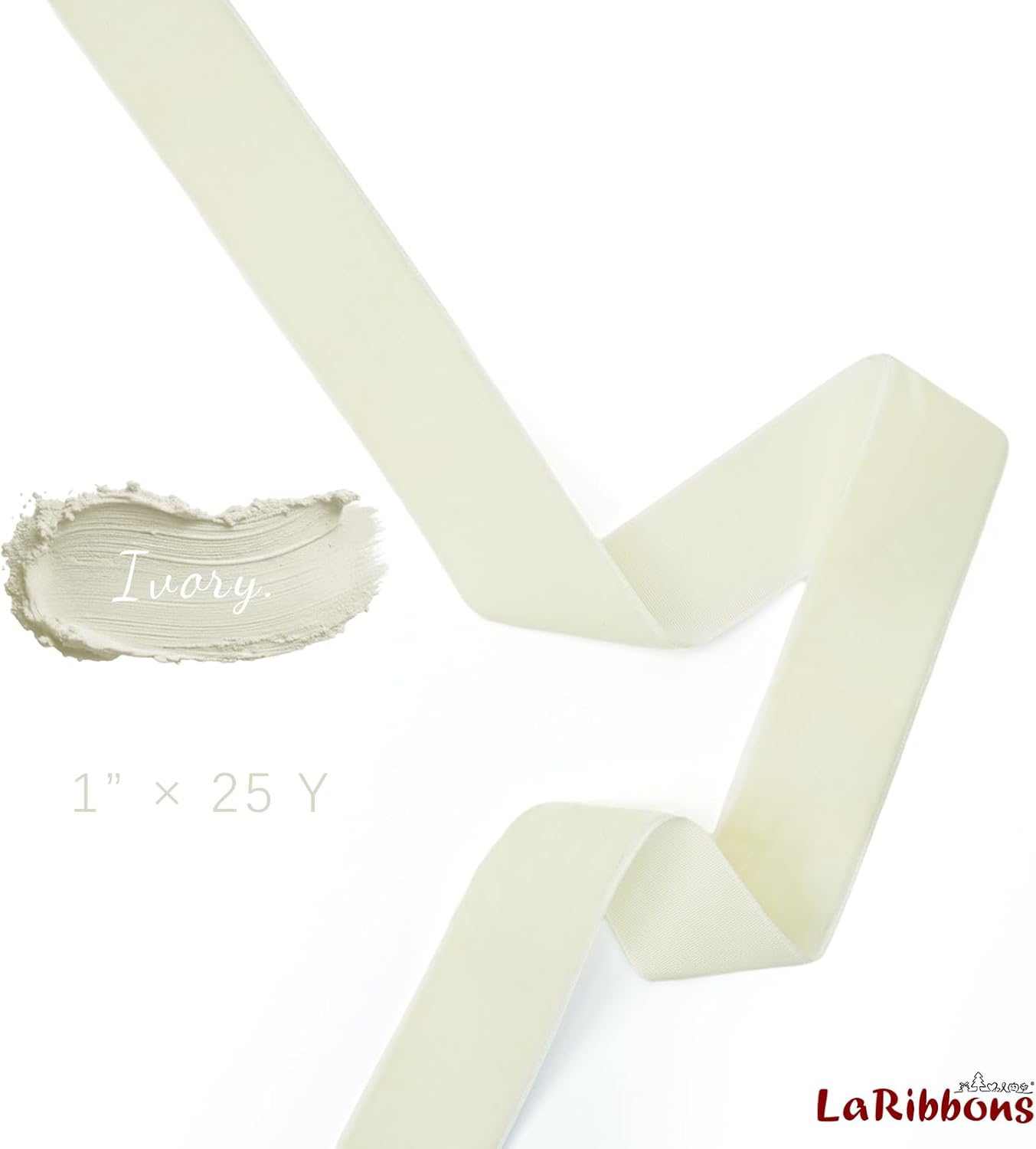 LaRibbons Thin Velvet Ribbon 1 Inch x 25 Yards, Cream Ivory Velvet Ribbon for Christmas Tree, Gift Wrapping, Wreath Bow, Outdoor Decoration