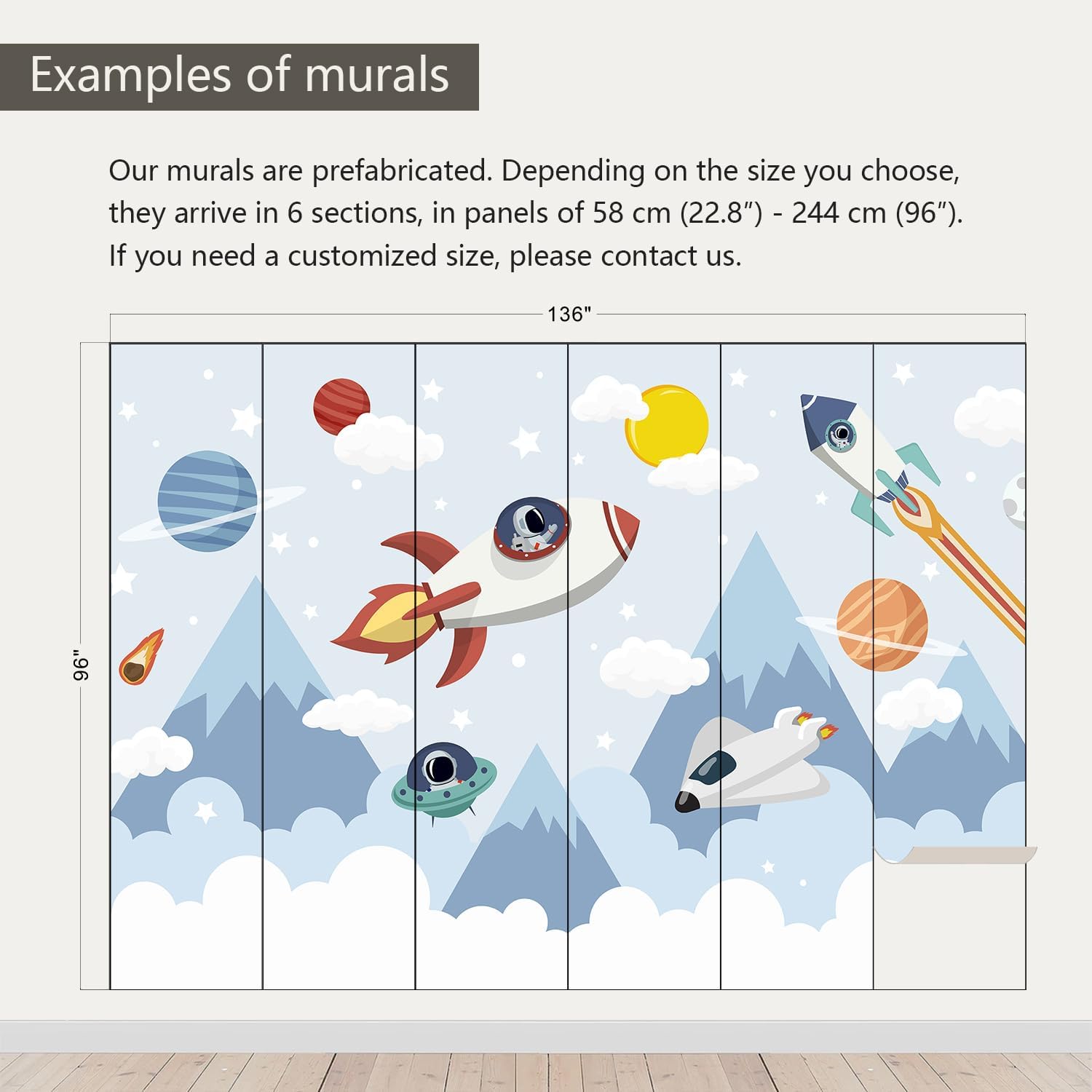 AFZEVEB-Space Mural Hand-Painted Cartoon Wallpaper for Kids Room 136"x96"(Not Peel and Stick)