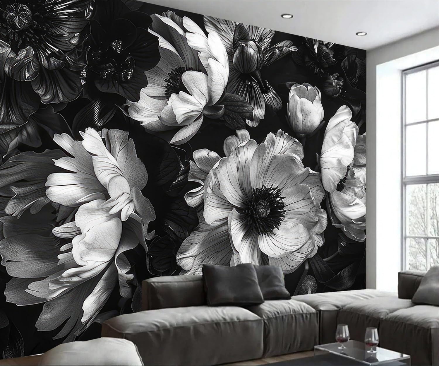 AFZEVEB-Black Peony Floral Wallpaper Vintage Large Flower Wall murals for Bedroom 114"x74"(Not Peel and Stick)
