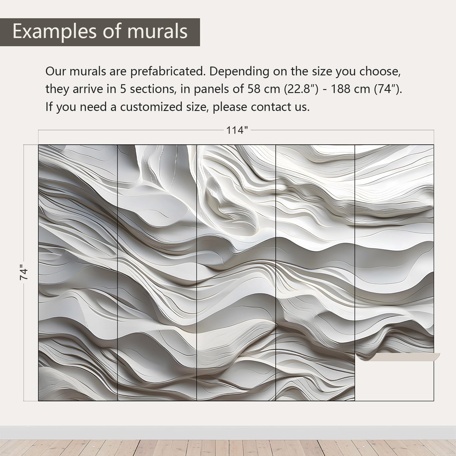 - Size note: Mural measures 114"W x 74"H and is divided into 5 sections, each section is labeled with a number underneath, eliminating the need to overlap patterns when installing.