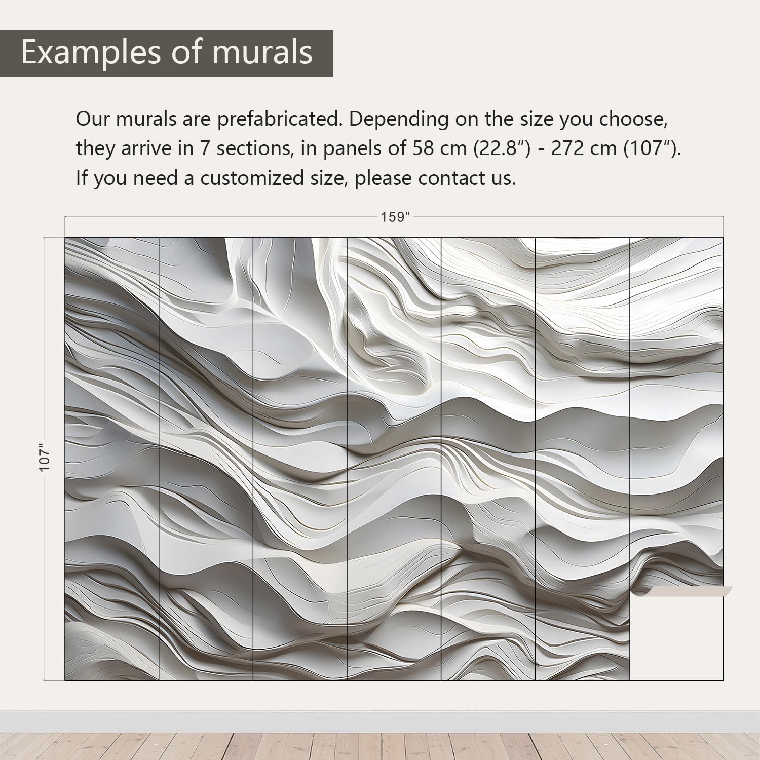 - Size note: Mural measures 159"W x 107"H and is divided into 7 sections, each section is labeled with a number underneath, eliminating the need to overlap patterns when installing.