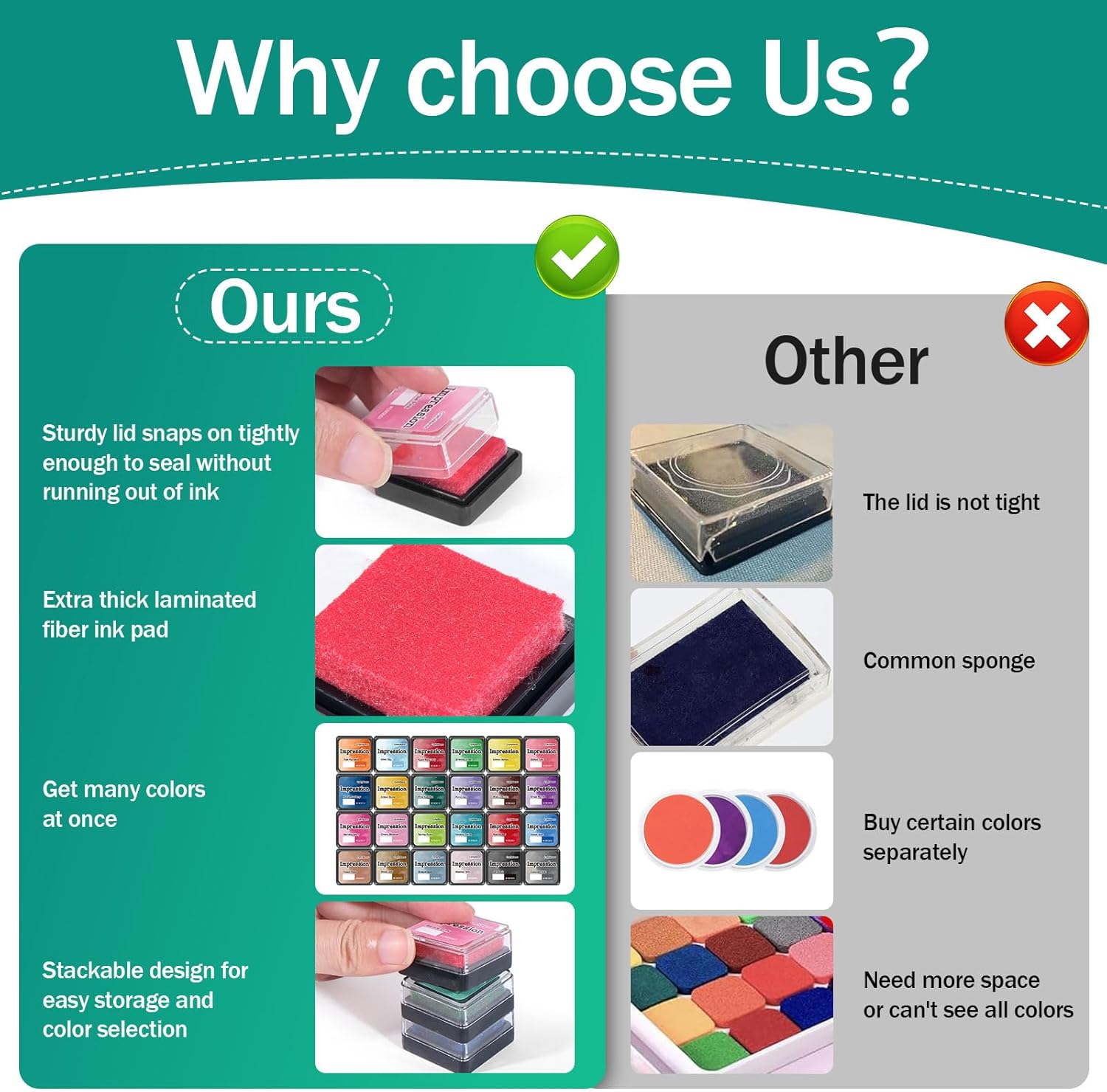 - 【Sealed Lid Specially Designed】:We have specially designed the cover of the stamp pads for kids to be tighter and more sealed. As a result, neither the lid nor the ink will run off, making the scrapbook supplies more long-lasting