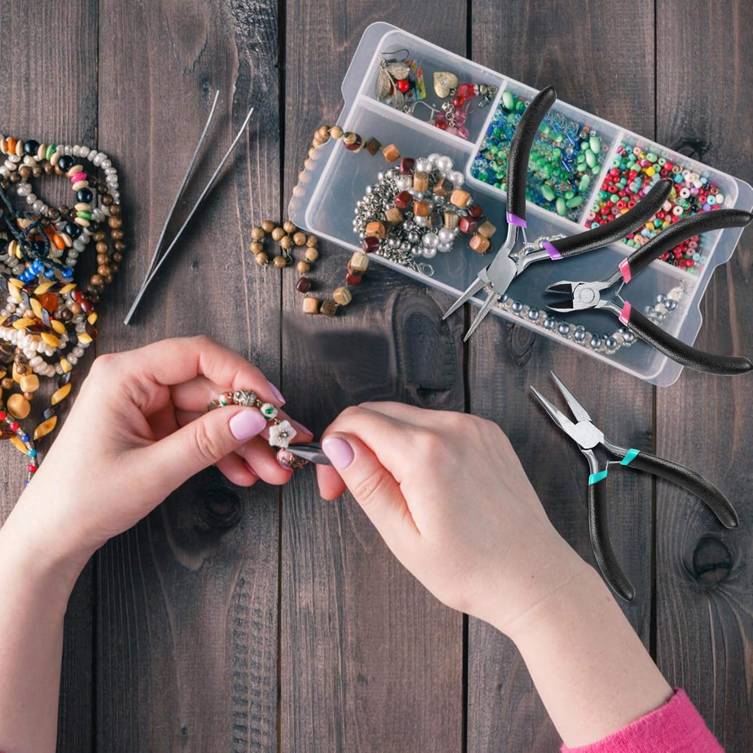 - Package Includes: You will receive 3 pieces jewelry making pliers, including needle nose pliers, round nose pliers, cutting pliers, and one tweezer, a jump ring, which is enough for your jewelry making. Ideal for cutting thin metal wire or flexible jewelry string wire.