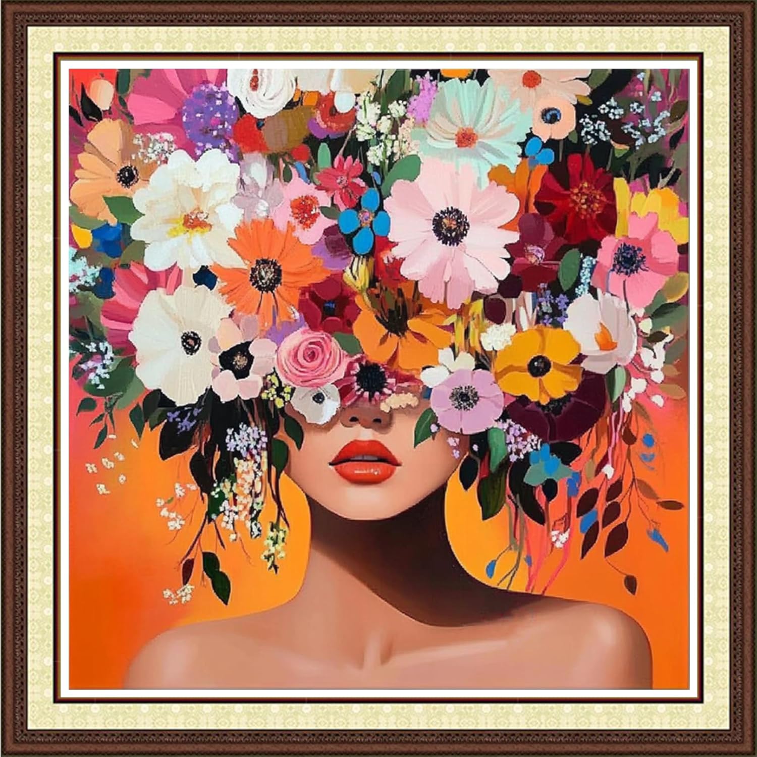 Findvoor Counted Cross Stitch Kits for Adults Full Range of Cross Stitching Embroidery Unprinted Pattern for Beginners, 11CT Needlepoint Kit Patterns Embroidery Kits-Magical Flower Girl 18x18 inch