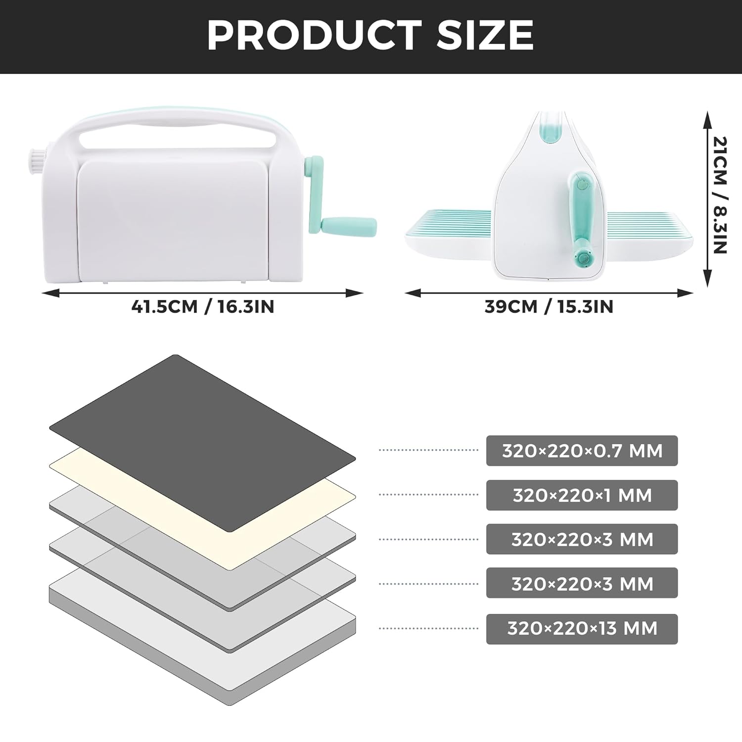 - Portable and Cute design but multifunctional:The die cutting machines for crafting has a handle, you can easily pick it up wherever you go.The blue and white color combination gives it a nice appearance and is the perfect choice as a gift.