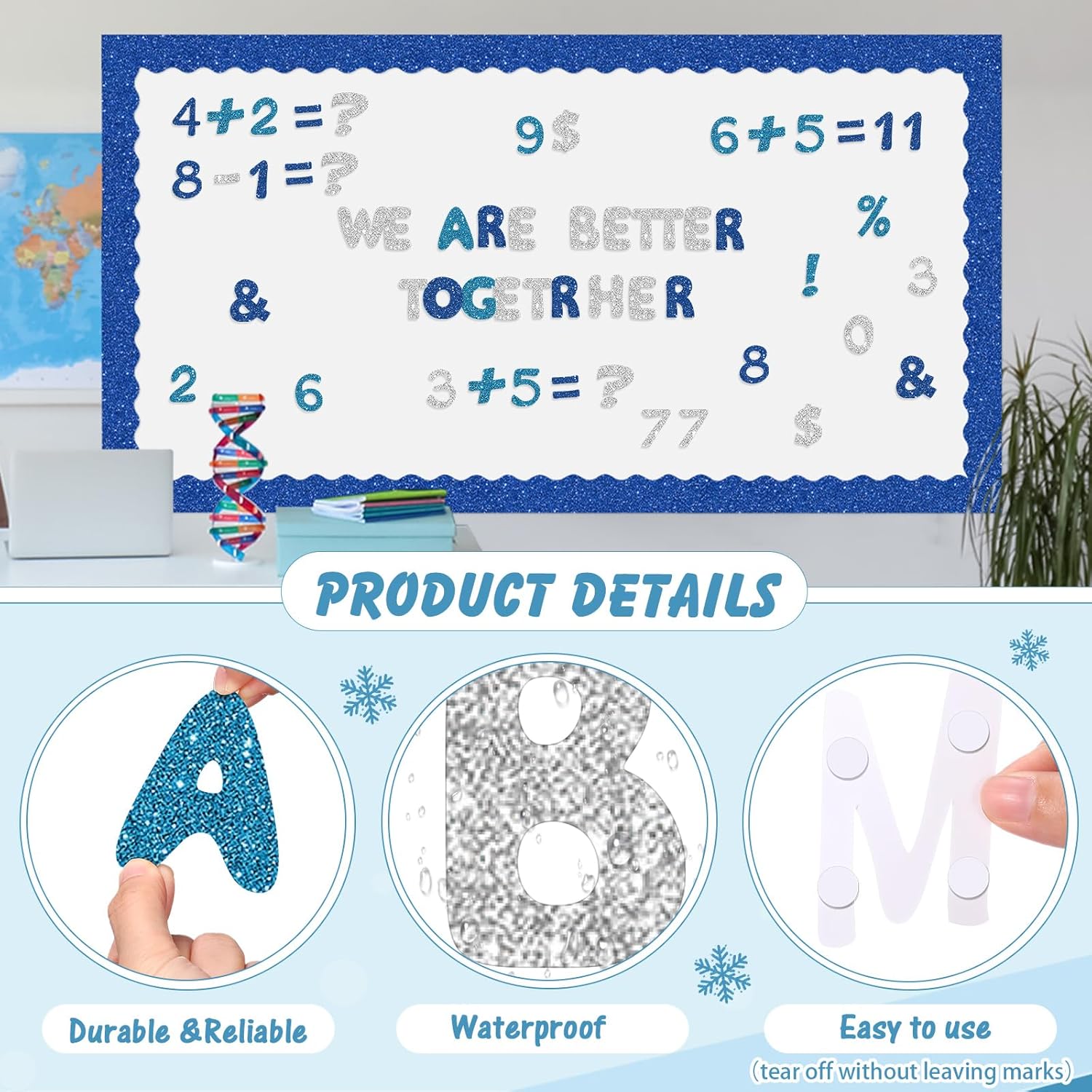 221 Pcs Classroom Bulletin Board Letters Colorful Alphabet Cutouts Number and Punctuation Symbol Combo Letter Cutouts for Wall Chalkboard Poster Board Decor(Blue Glitter Round)