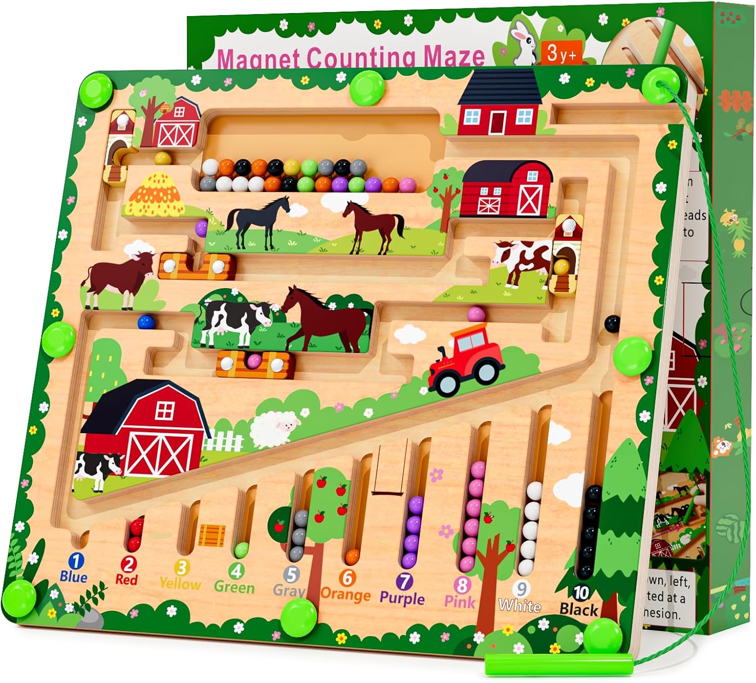 - Safe & Chid-Friendly Design: This wooden magnetic montessori toy is made of extra thick, high quality natural wood and non-toxic water-based paint with smooth edges and corners, fixing with 8 nails to make sure it is sturdy and safe ,The high-quality acrylic sheet makes the board sturdy and durable, and the magnetic beads won't fall off and cause harm to children.