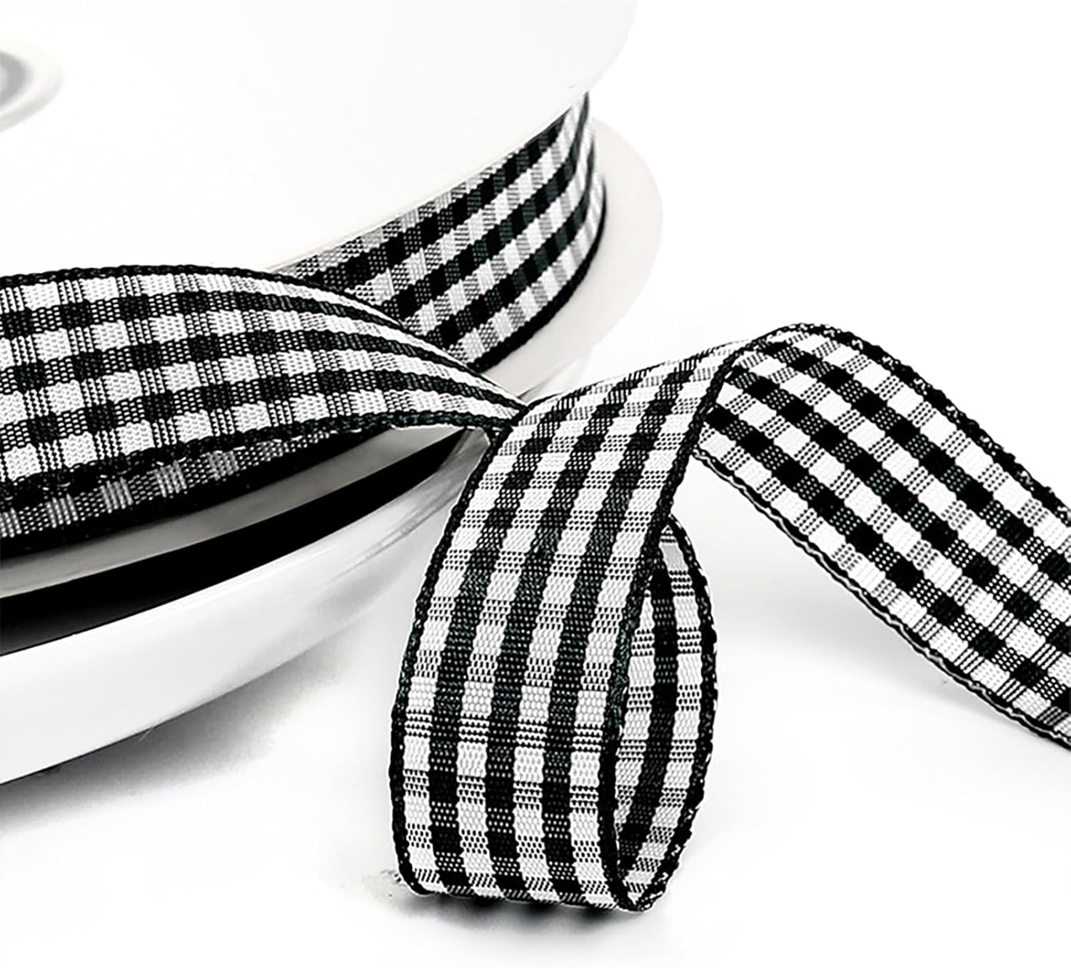 Classic Gingham Checkered Ribbon, Assorted Colors Premium Polyster Plaid Checkered Craft Ribbon for Gift Wrapping, DIY Projects, Hair Bows,Scrapbooking & Party Decor (Black, 5/8x50Yd)